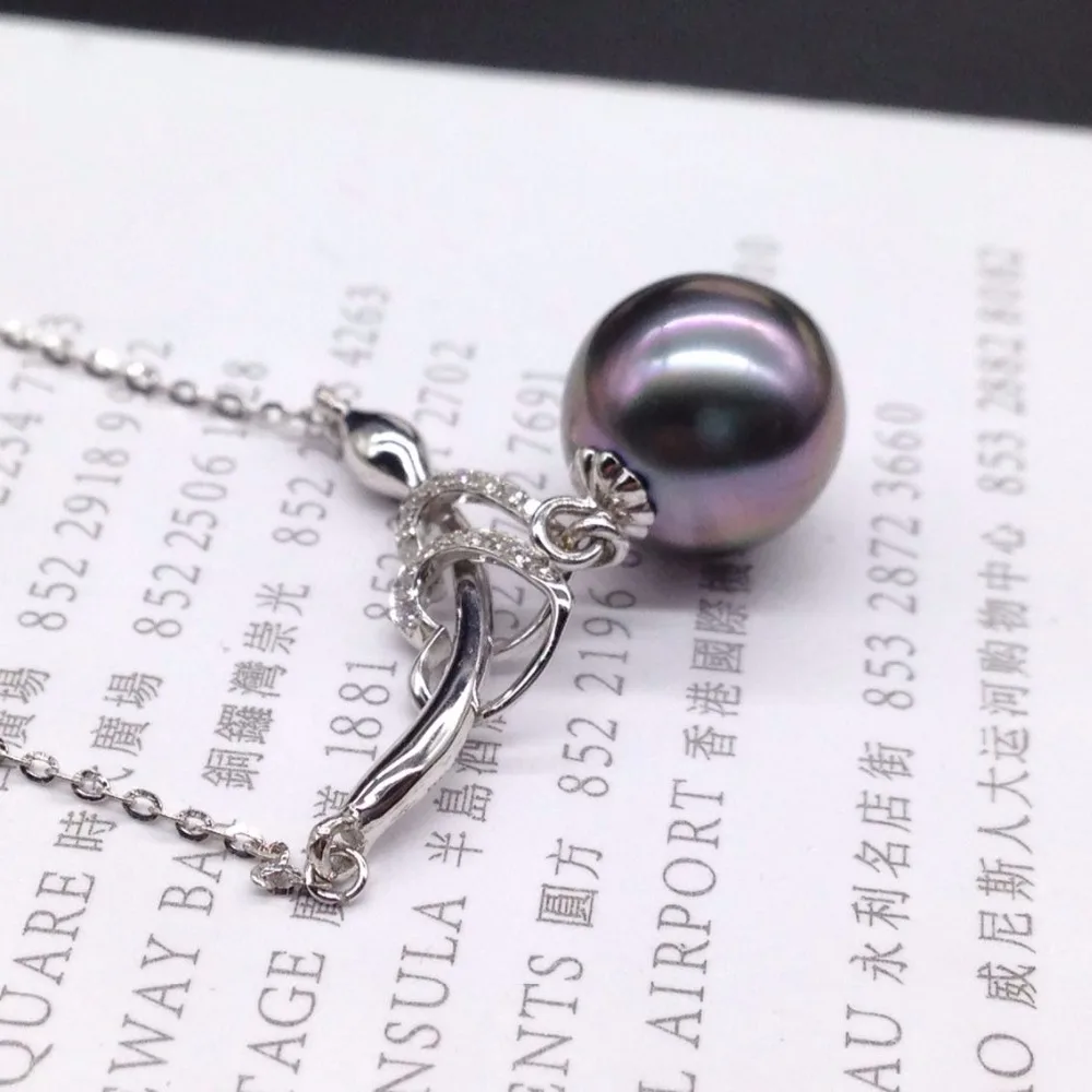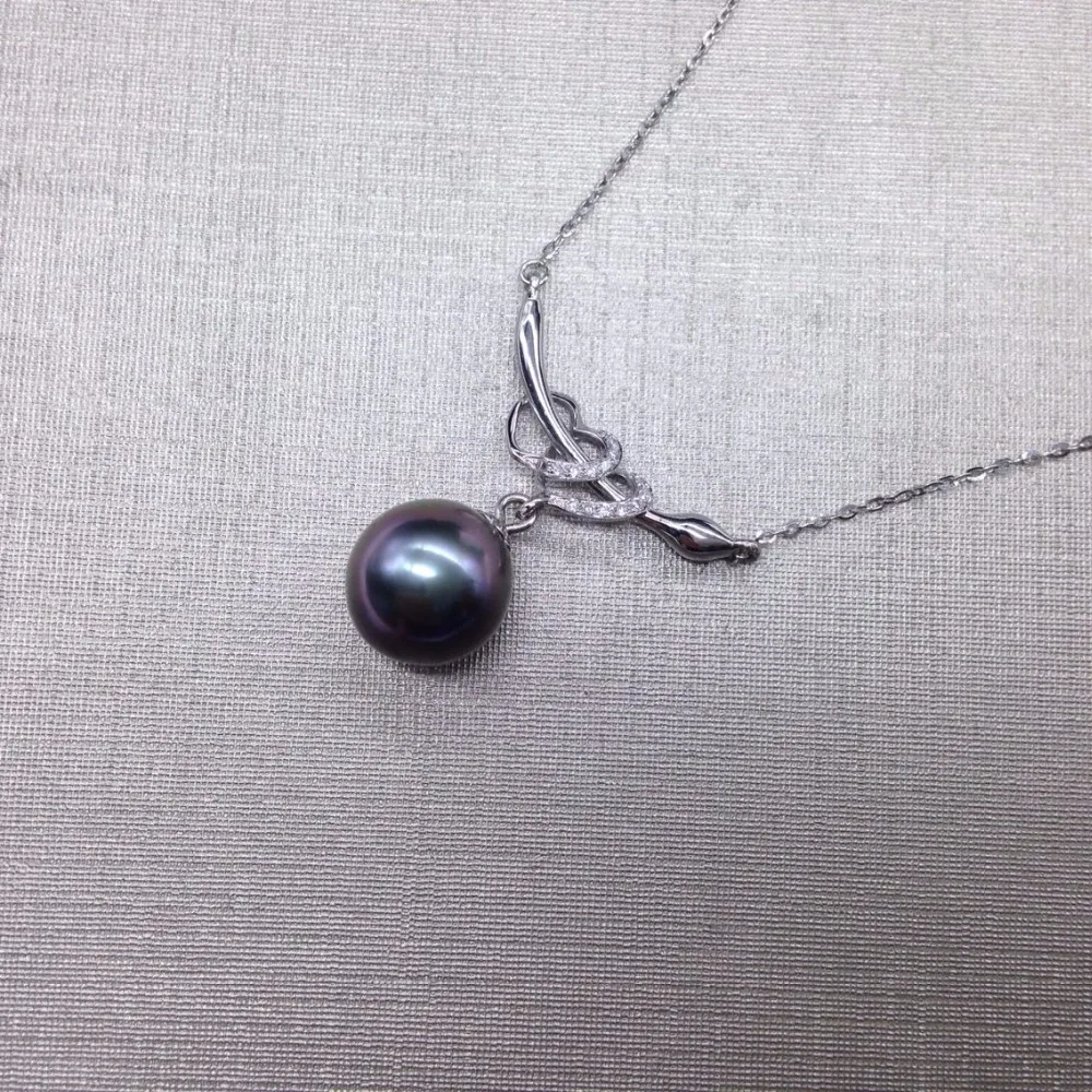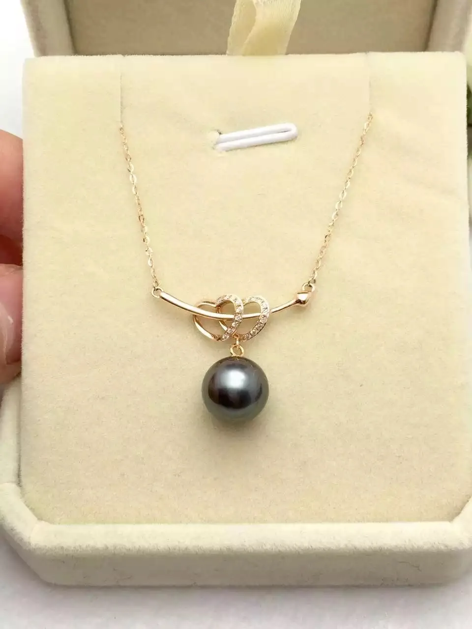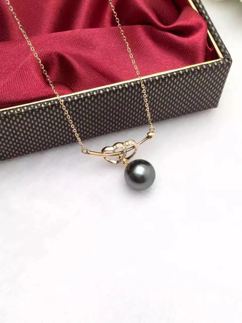 Diamond Setting Tahiti Black Pearl Pendant Necklace Double Hearts and Arrow Natural Diamond Handmade Jewelry