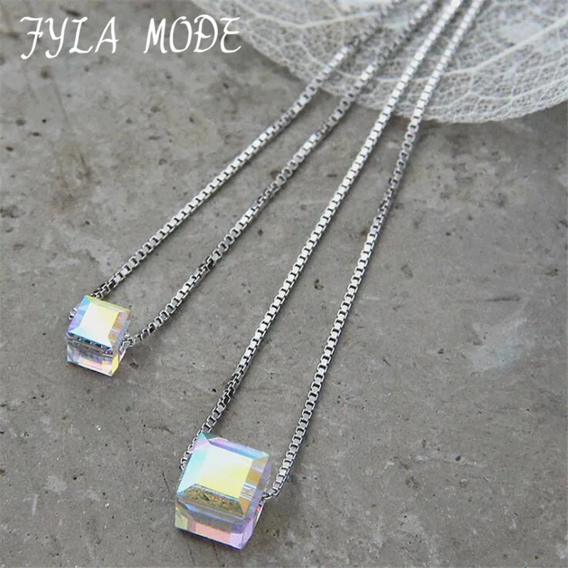 Collana a catena con clavicola in cristallo di caramella quadrata cubica in argento 925 di moda più recente Collana con ciondolo semplice stile estivo da donna