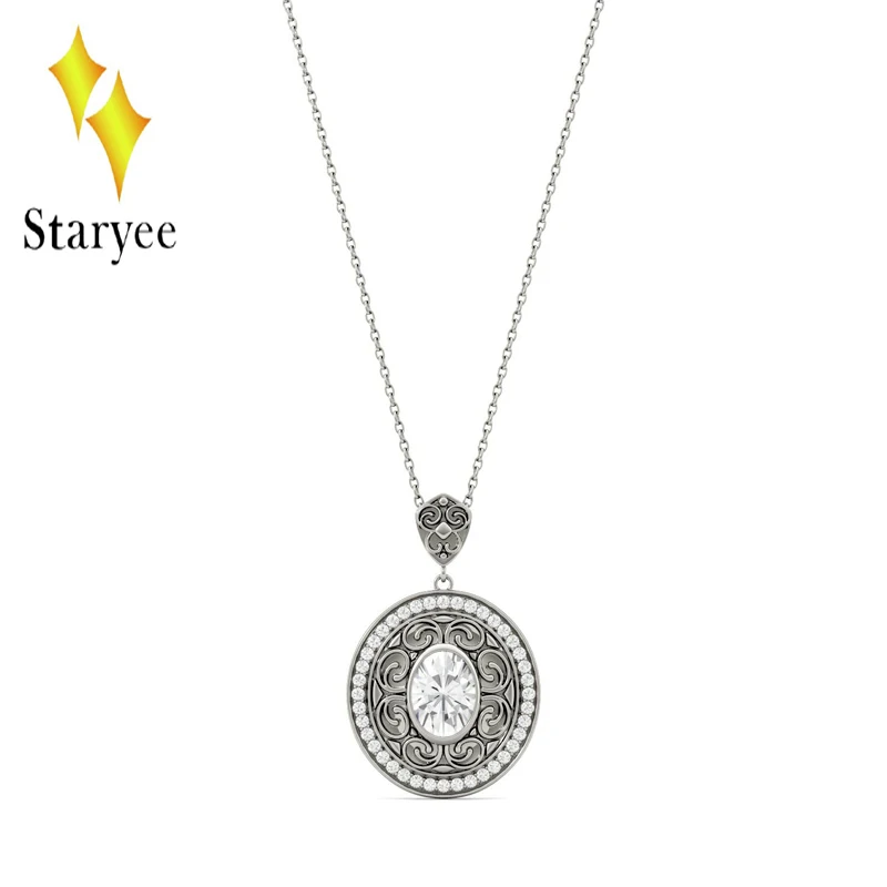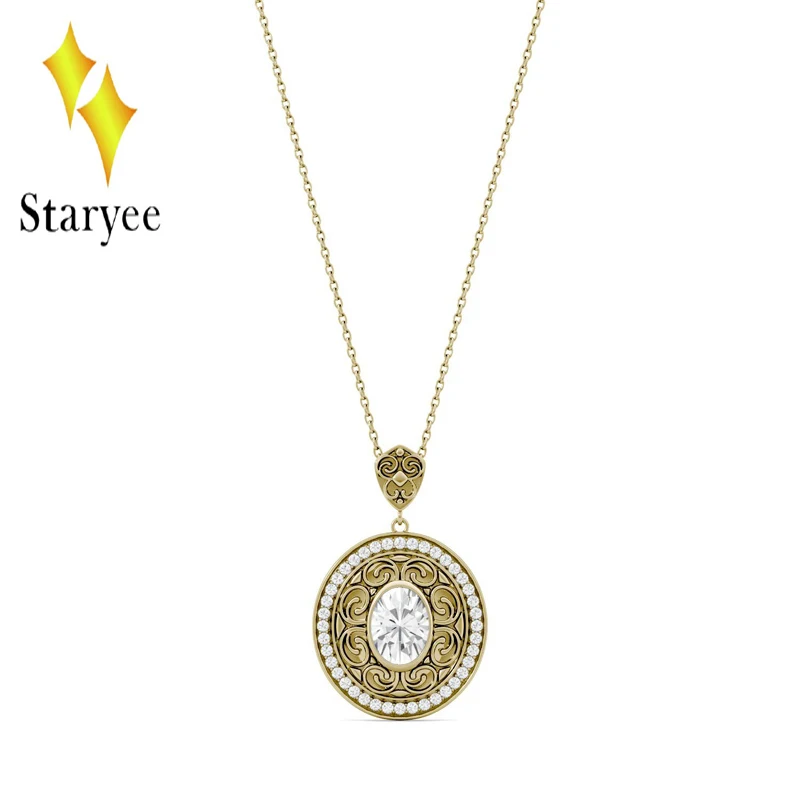 Genuine 18K Rose Gold Lovers Couple Diamond Wedding Engagement Band Moissanite Pendant Necklace For Women Fine Jewelry