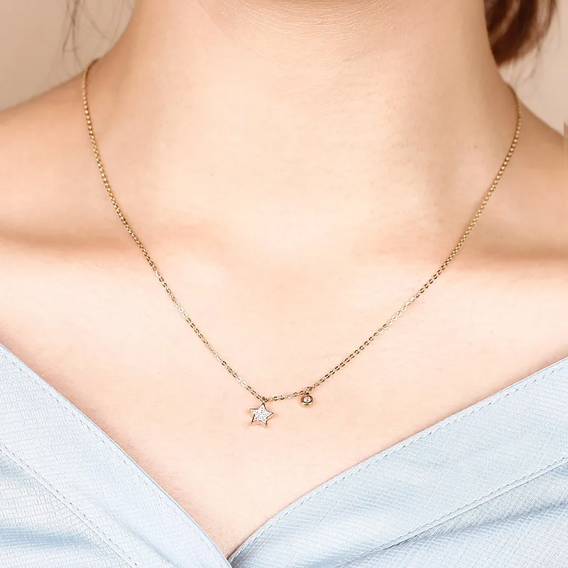 Genuine 925 Sterling Silver 18K Gold Necklaces for Women 2018 New Fine Jewelry AAA CZ Star Necklaces & Pendant