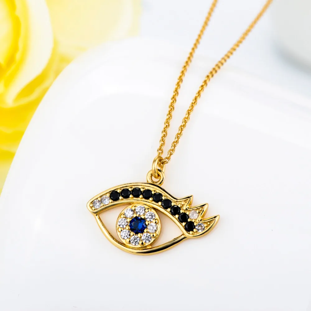 Collana con ciondolo da donna Hamsa bianco blu CZ in autentico argento sterling 925 in oro 18 carati per donna