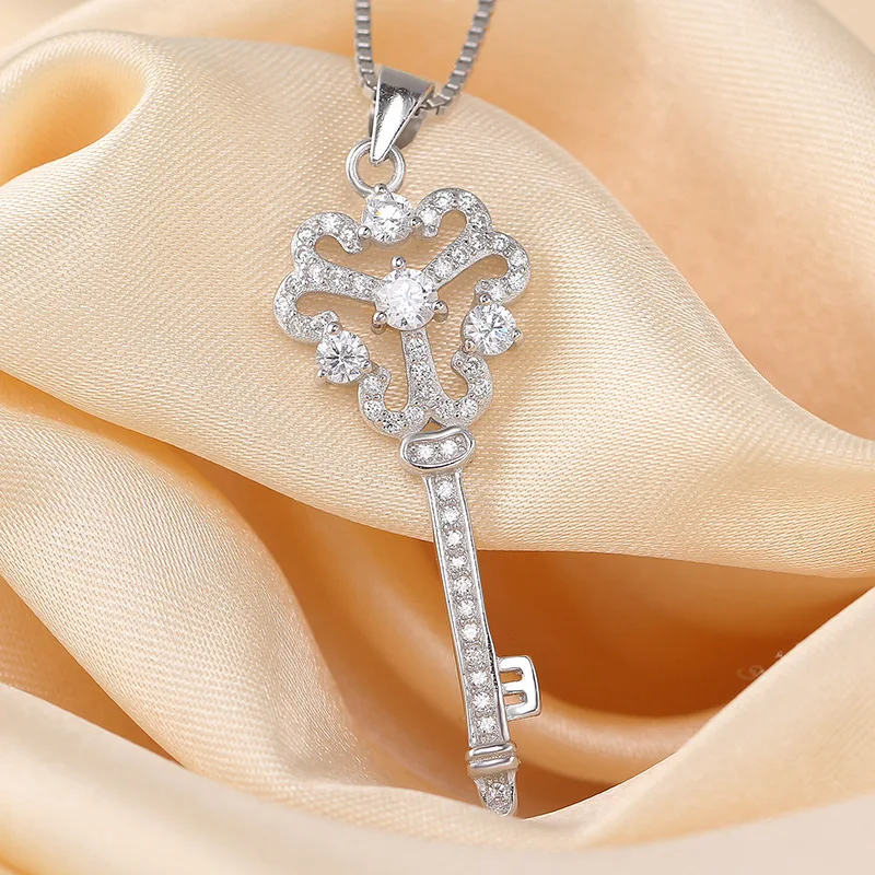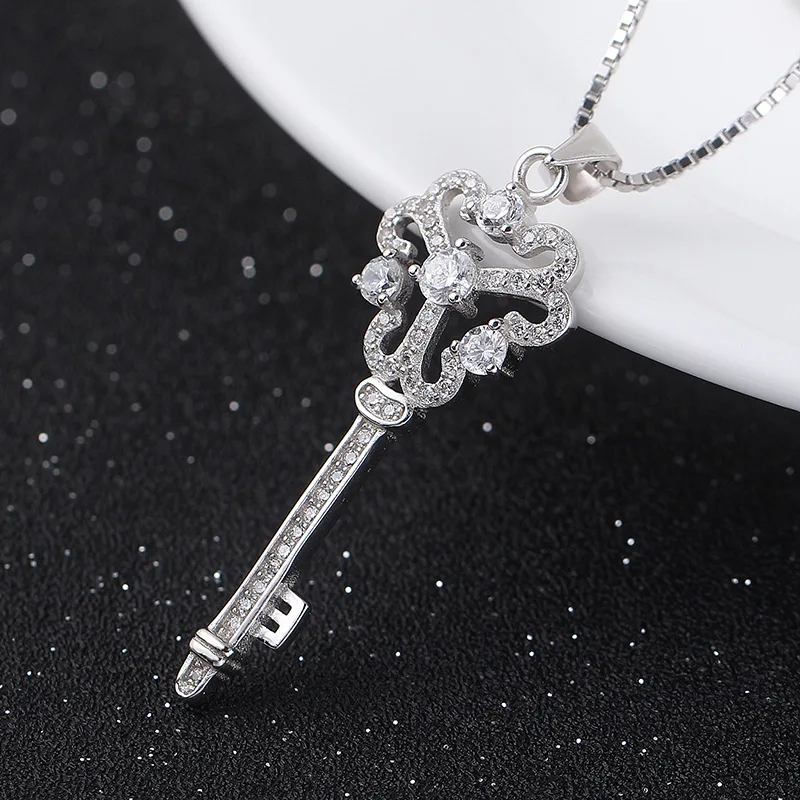 Collana in argento sterling 925 autentico con chiave a forma di fiore, ciondolo in zircone AAA, catena in argento, gioielli con fascino per donna