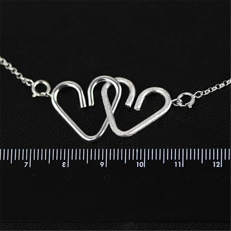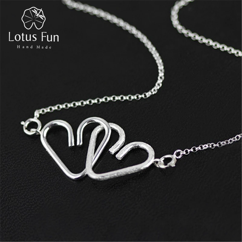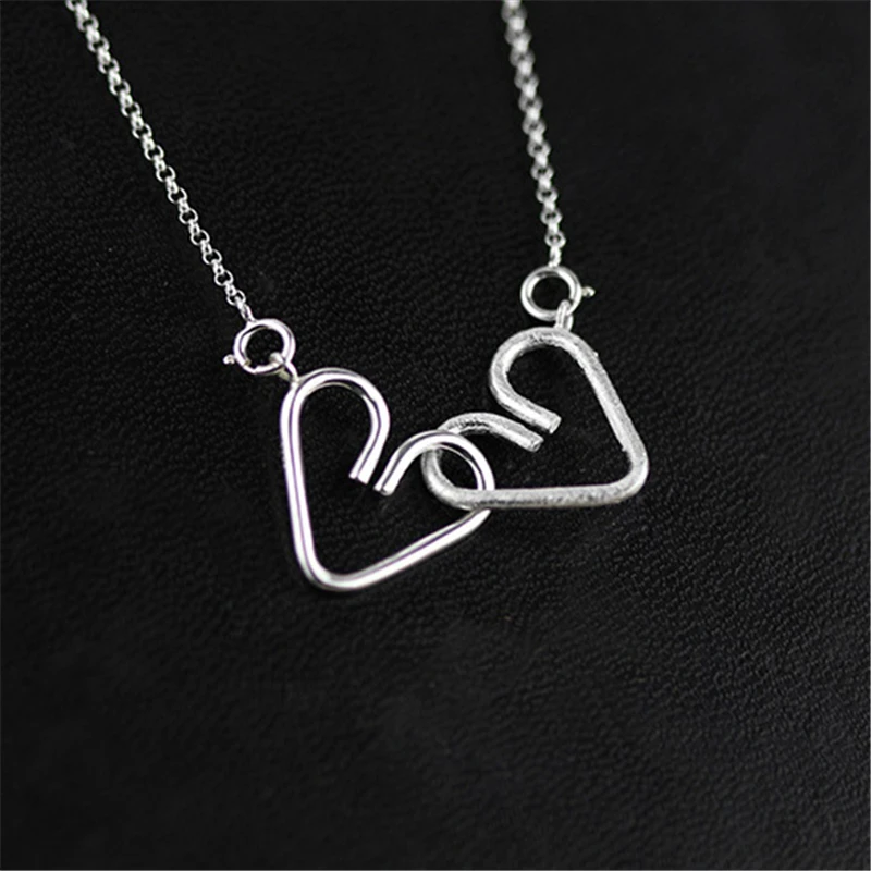 Real 925 Sterling Silver Handmade Designer Fine Jewelry Heart to Heart Necklace with Pendant Fashion for Women Collier