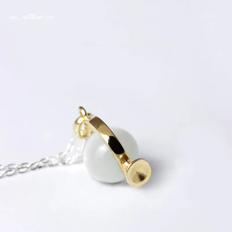Natural Stone Cymophanite Globe Necklaces & Pendants For Moman 925 Sterling Silver Chain Necklace Handmade Colar GN0015B