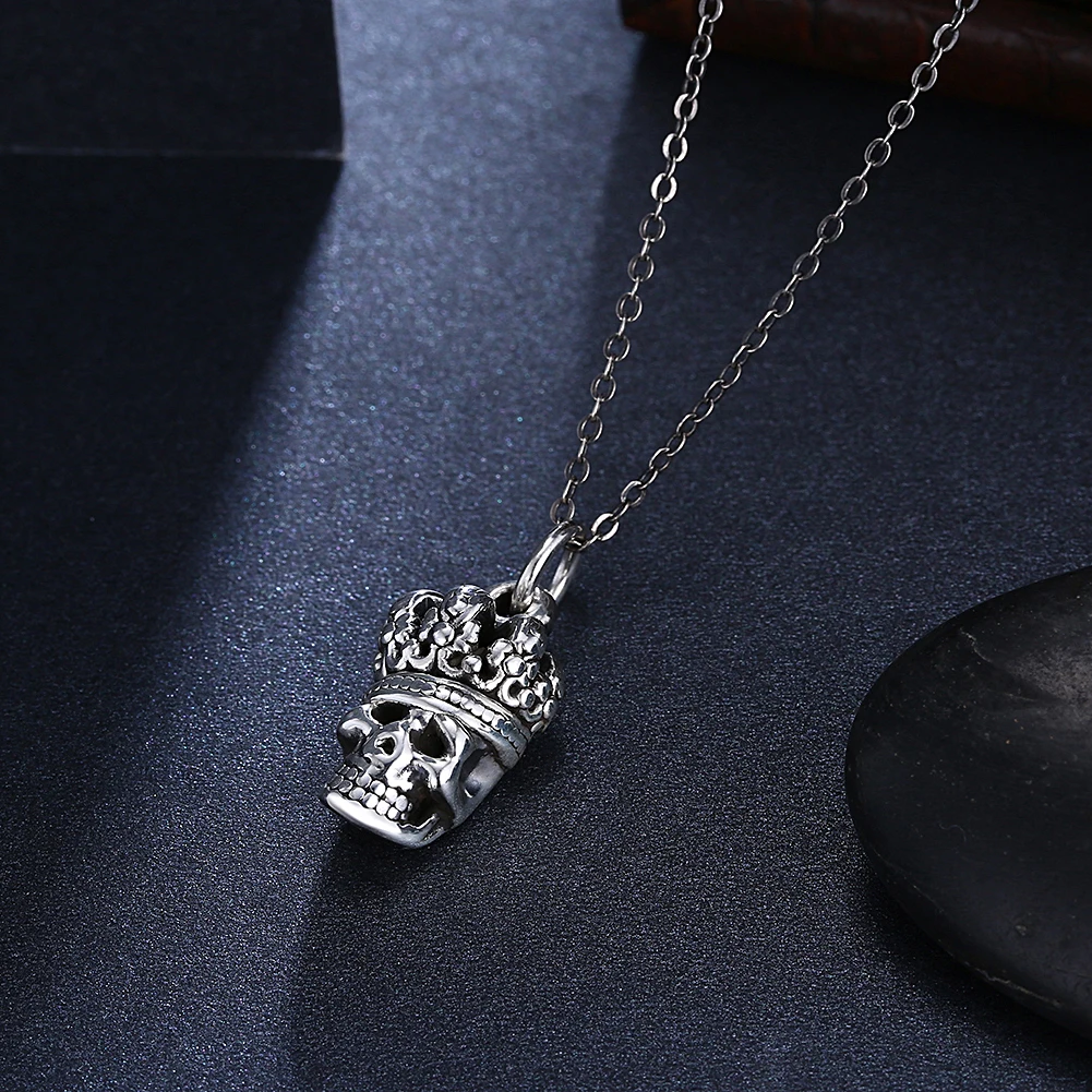 925 Sterling Silver Skeleton Pendant Necklace Charm Punk Style for Women Fine Jewelry Gift Classic European Vintage