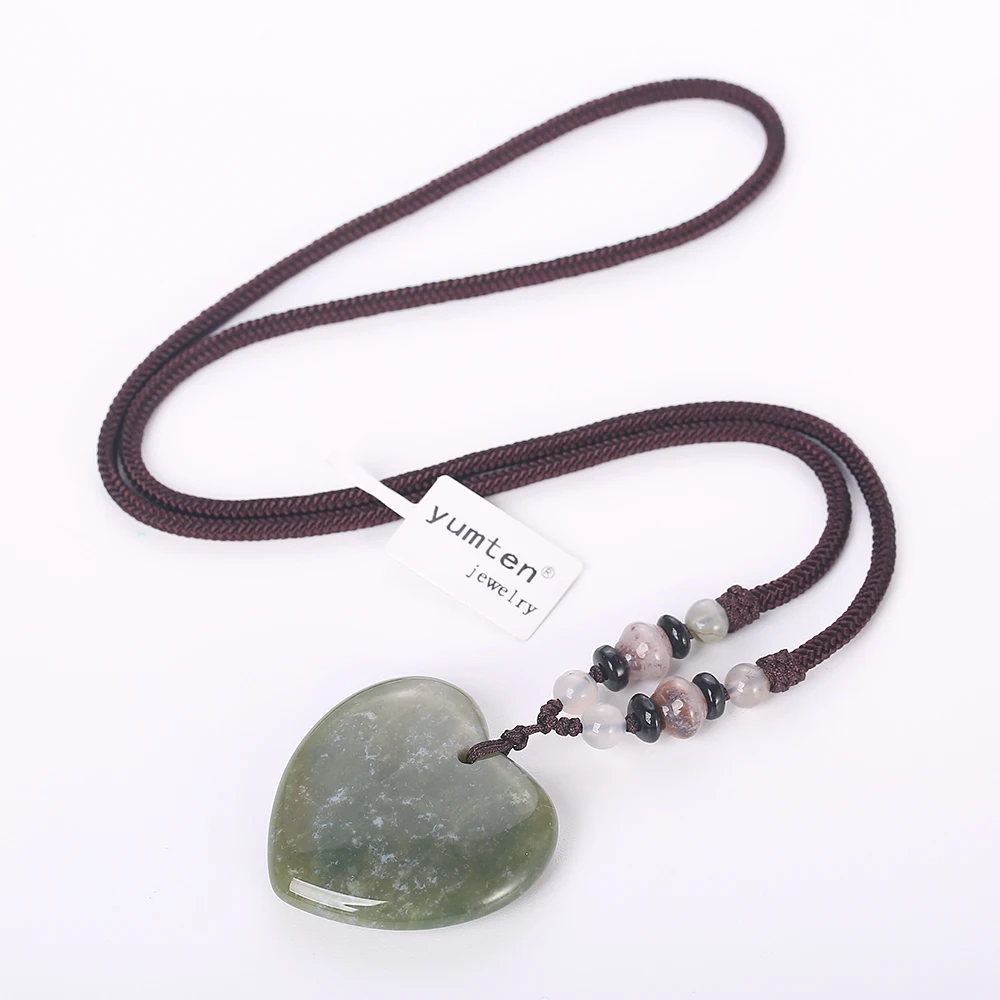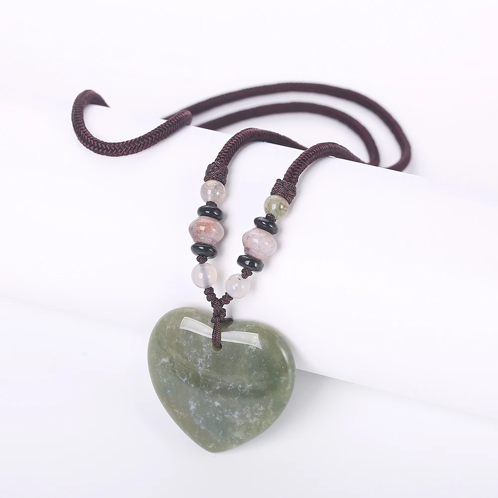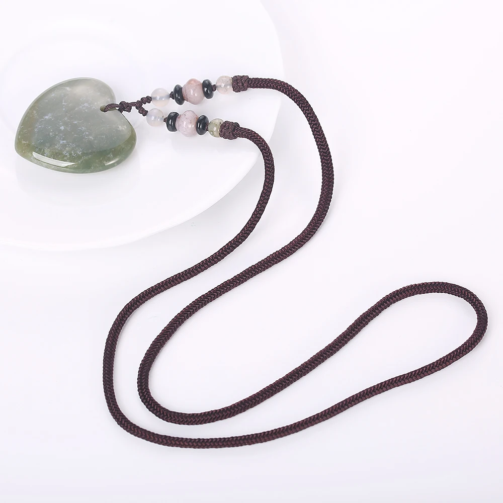 Heart Shaped Agate Long Necklace Bohemian Jewelry Natural Stone Knotted Stone Matching Stone Drop Pendant Necklaces For Women