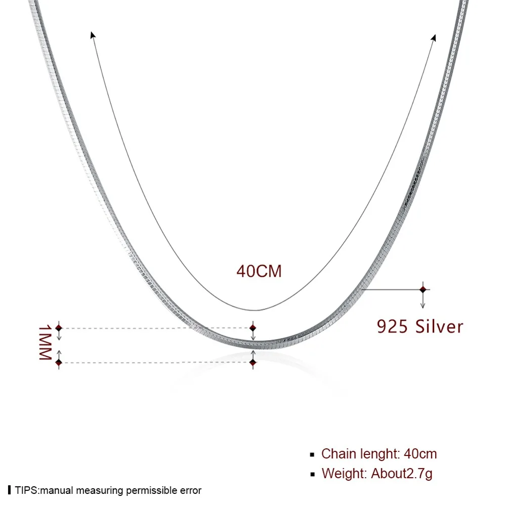 925 Sterling Silver Snake Chain Necklace Width 1.0mm, Length 40mm, 45mm Women European Fine Jewelry Gift TFN013