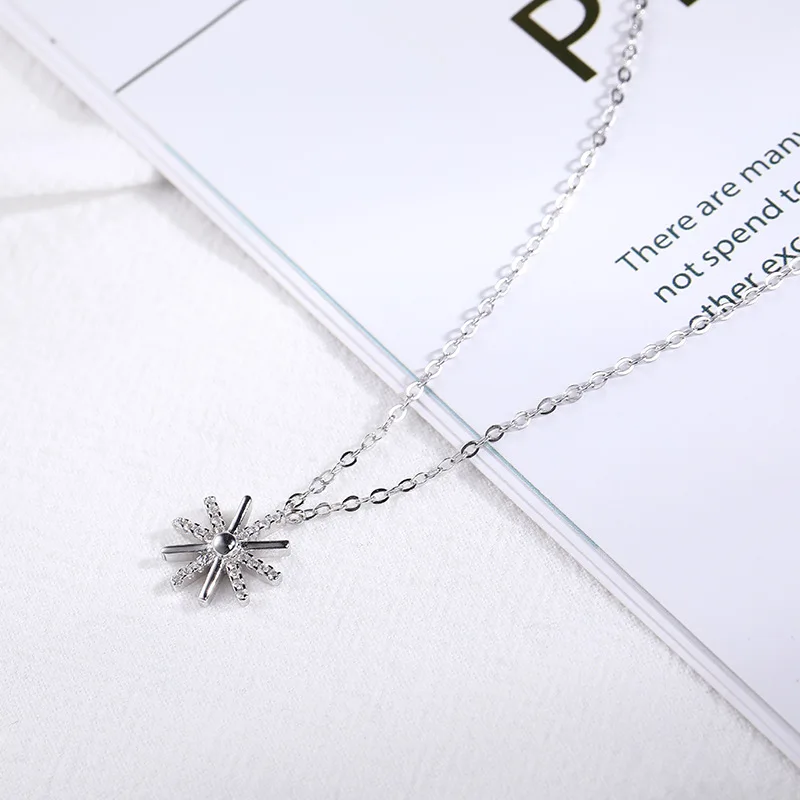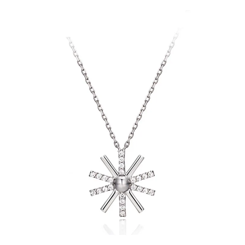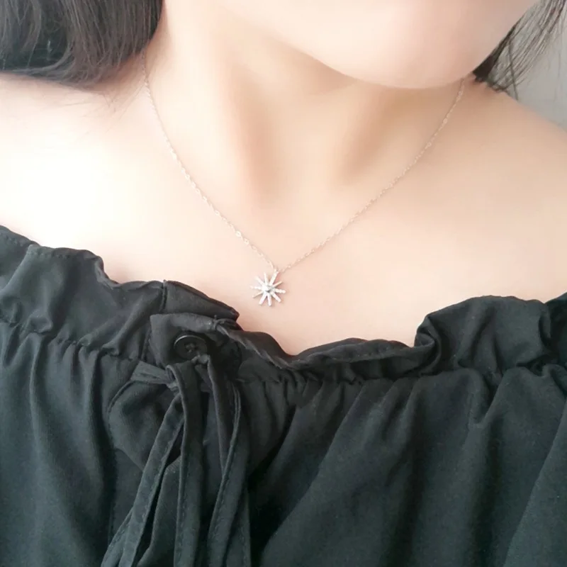 Zircon 925 Sterling Silver Sunflower Pendant Necklace Geometry Luxury and Romantic Style Fine Jewelry for Women M-N-001