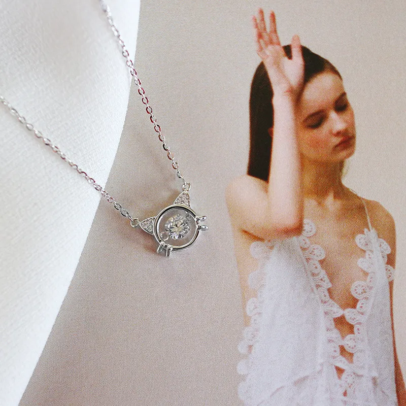 intarsio di gioielli in argento sterling 925 Collane a forma di gatto con zirconi AAAA