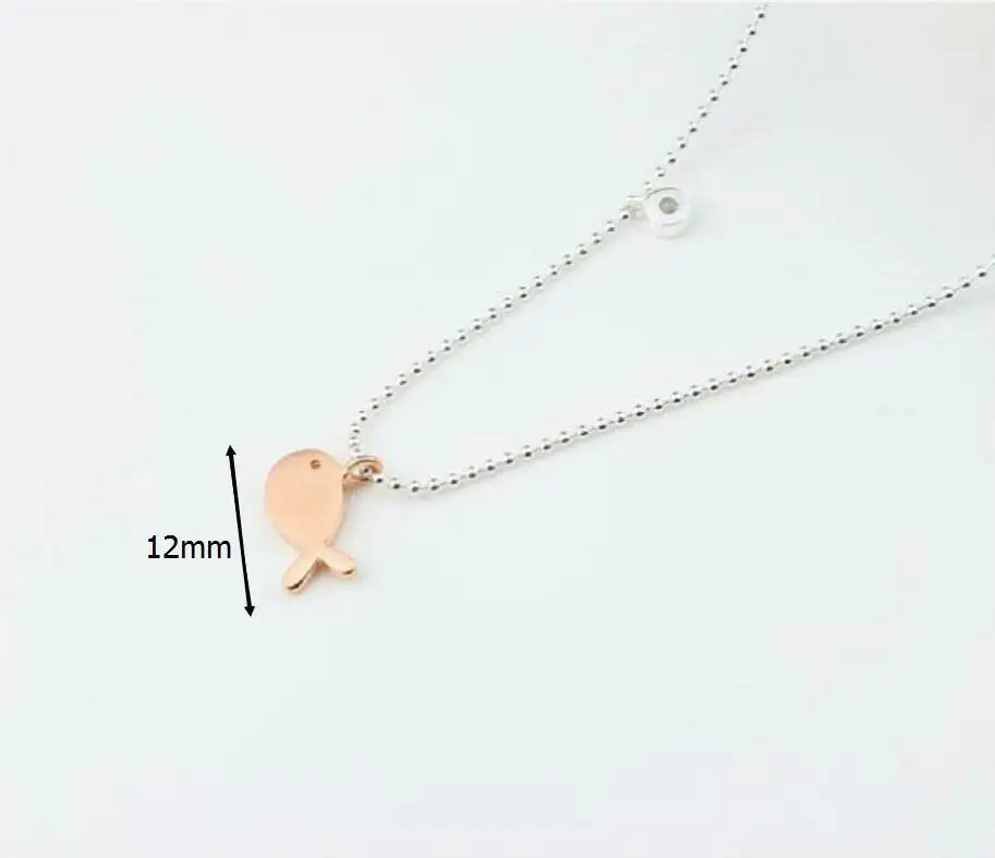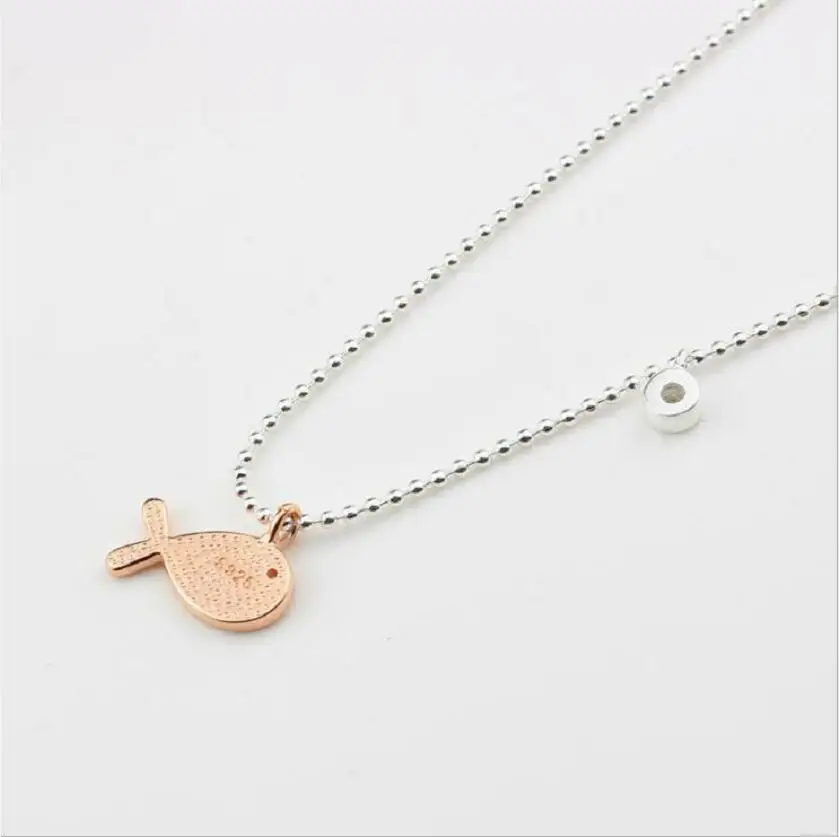 Korean version of the personality 925 set zircon silver beads necklace female sterling silver brushed rose gold fish J0286