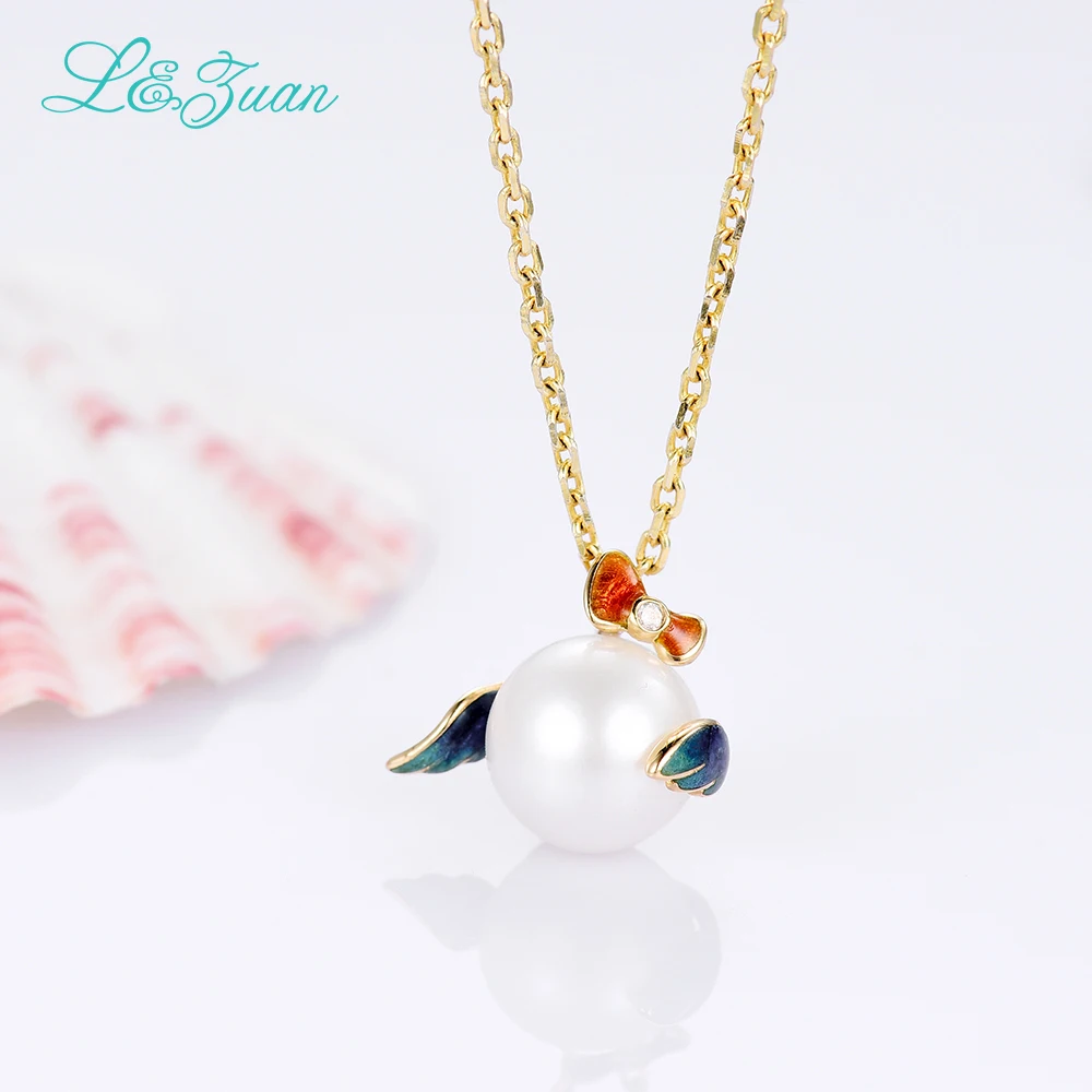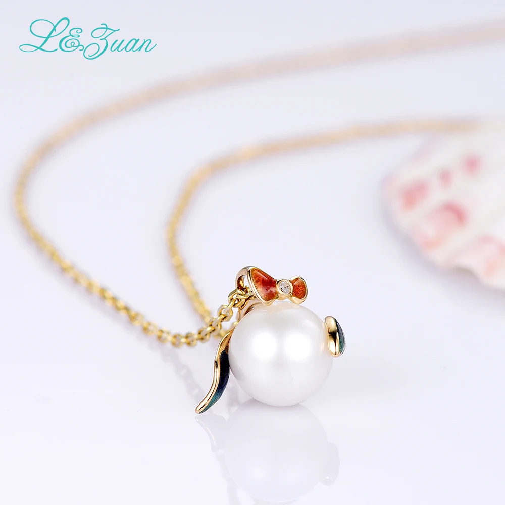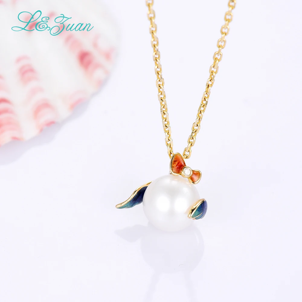 Brand Luxury fine real enamel natural diamond pearl pendant & 18 k gold necklace fine jewelry for women
