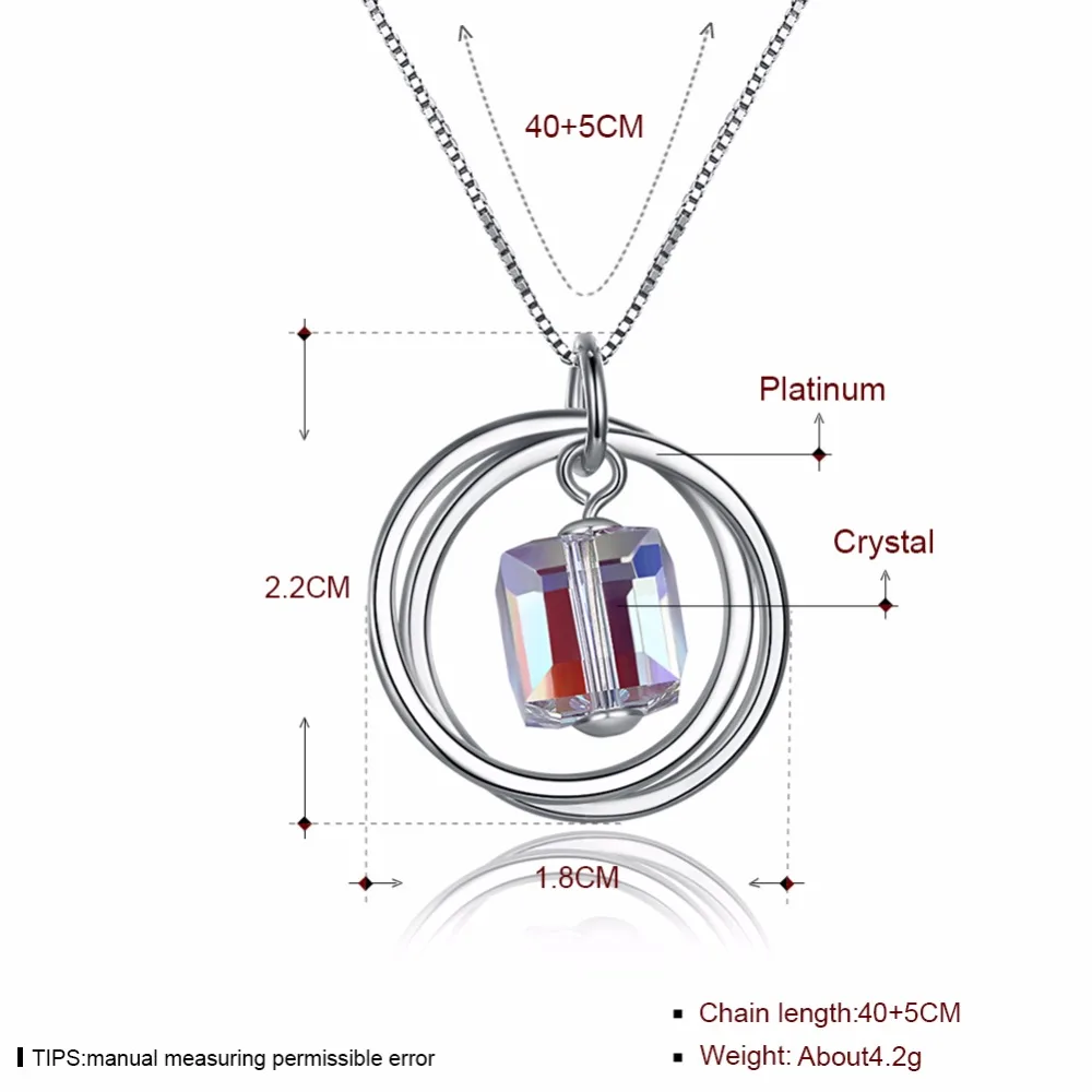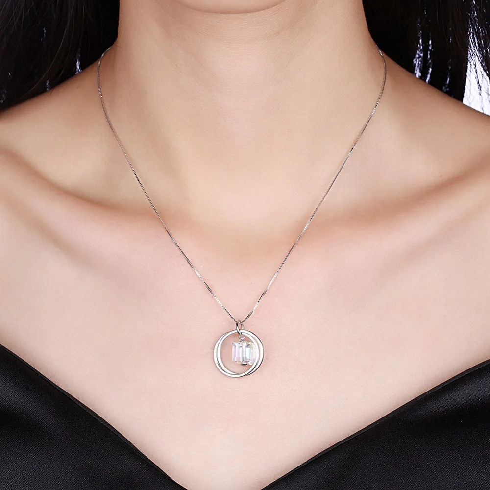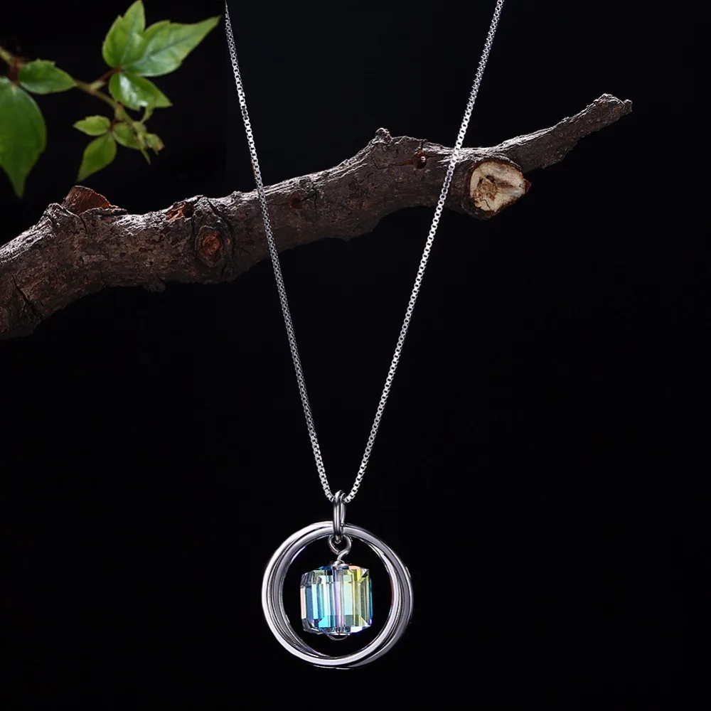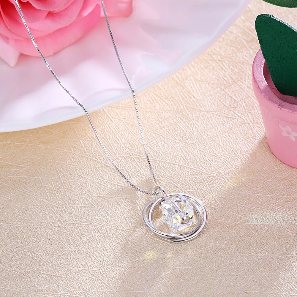 Carino vero. Collana in argento sterling 925 con ciondolo a forma di cubo di cristallo, gioielleria raffinata, doppio cerchio, cerchio della vita, di buona qualità