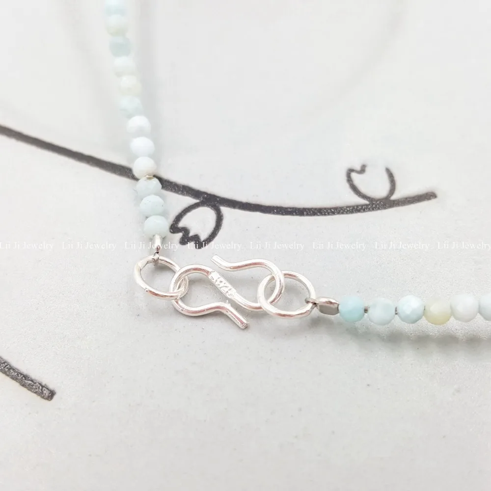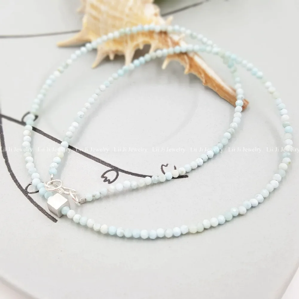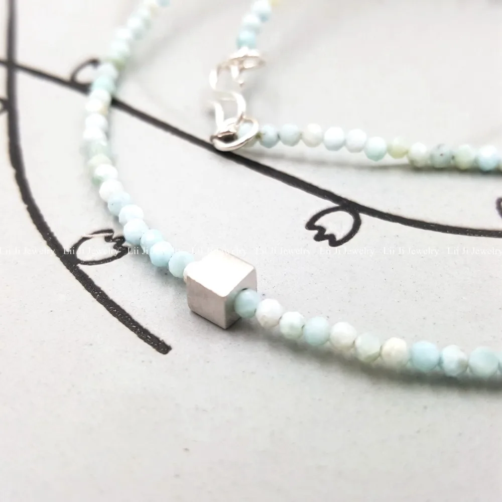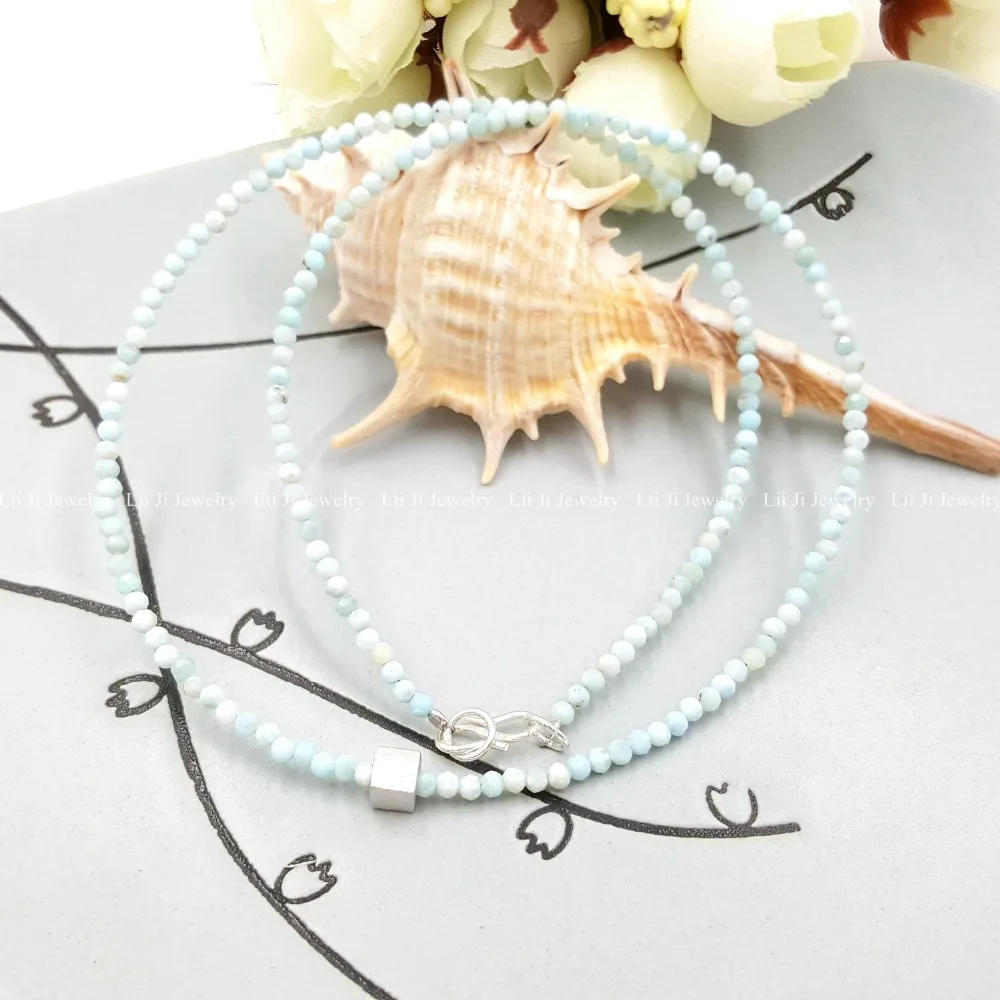 Natural Tiny Larimar,S925 Matte Cube 925 Sterling Silver Shining Necklace for Women Jewelry