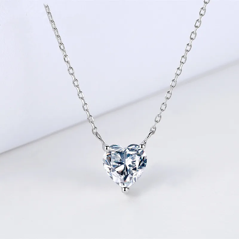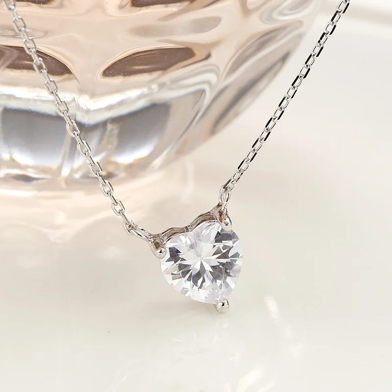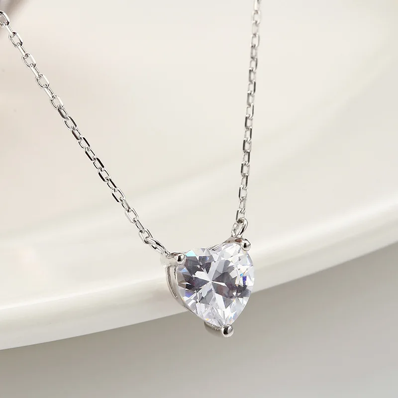 Lovely Heart Shape AAA Cubic Zirconia Pendant Necklace Gift Wedding Jewelry S925 Sterling Sliver Heart Crystal Necklace