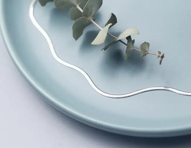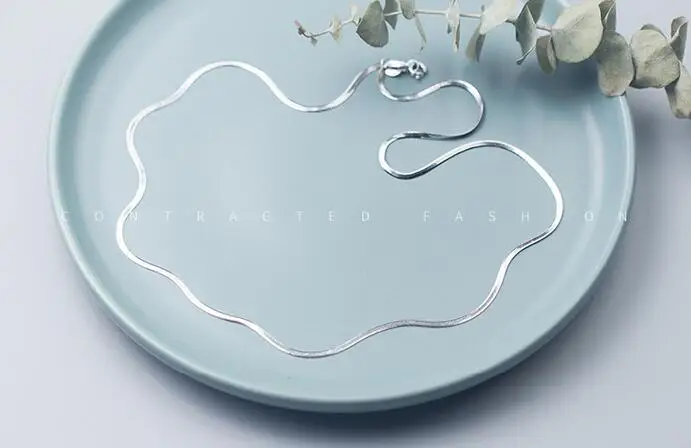 UOMO DONNA 2MM Lady 100% reale. Collana con lama in osso di serpente piatto in argento sterling 925 con catena 46,4 cm GTLX1425