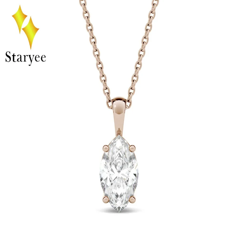 Moissanite Pendant 18K 750 Rose Gold 1.0ct 10*5mm Marquise Lab Grown Moissanite Diamond Pendant Necklace Chain For Women Jewelry