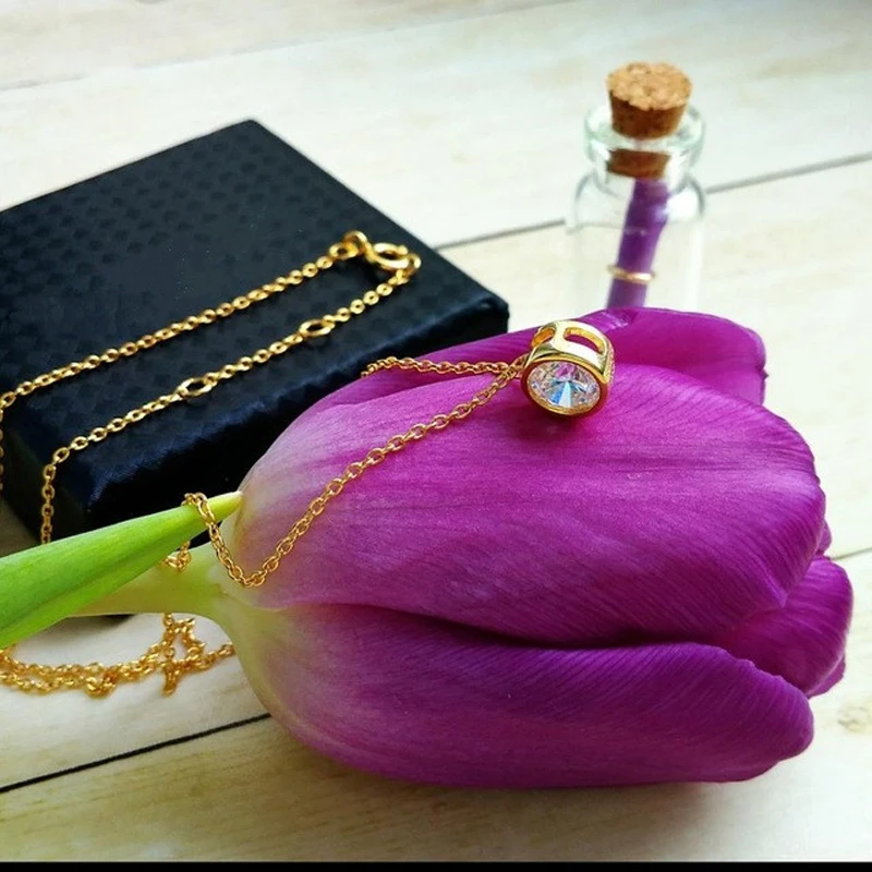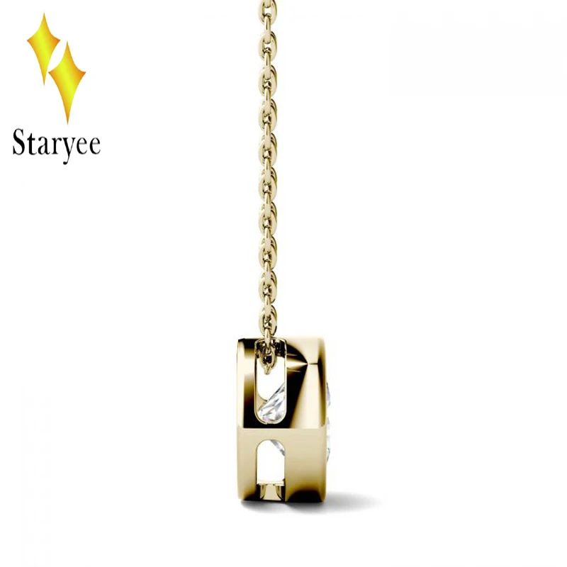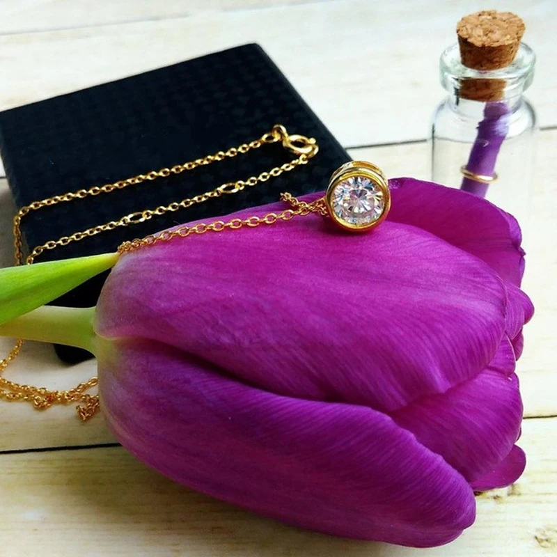 Moissanite Pendant 1ct Moissanite Bezel Set Solitaire Engagement Necklace Chain 18K Solid Yellow Gold Lab Diamond Wedding Band