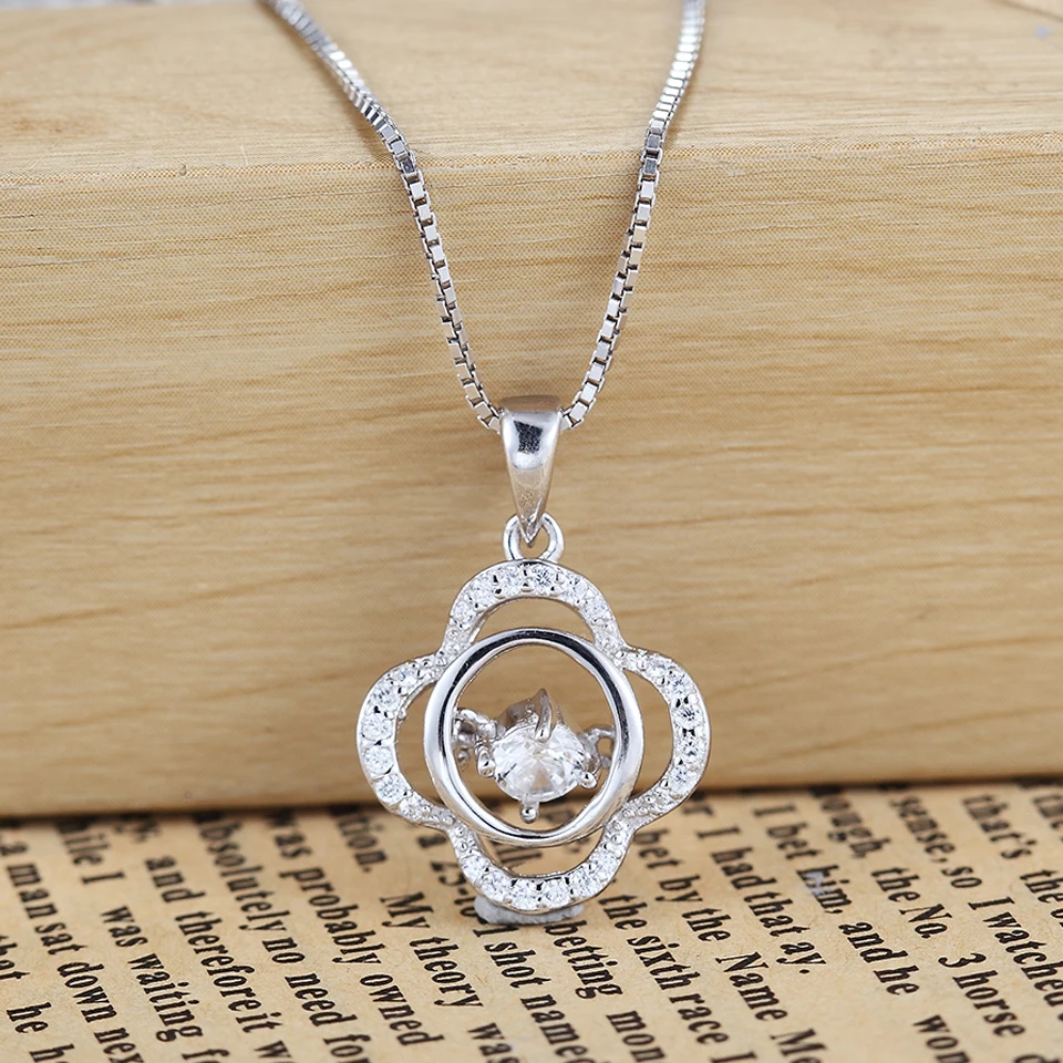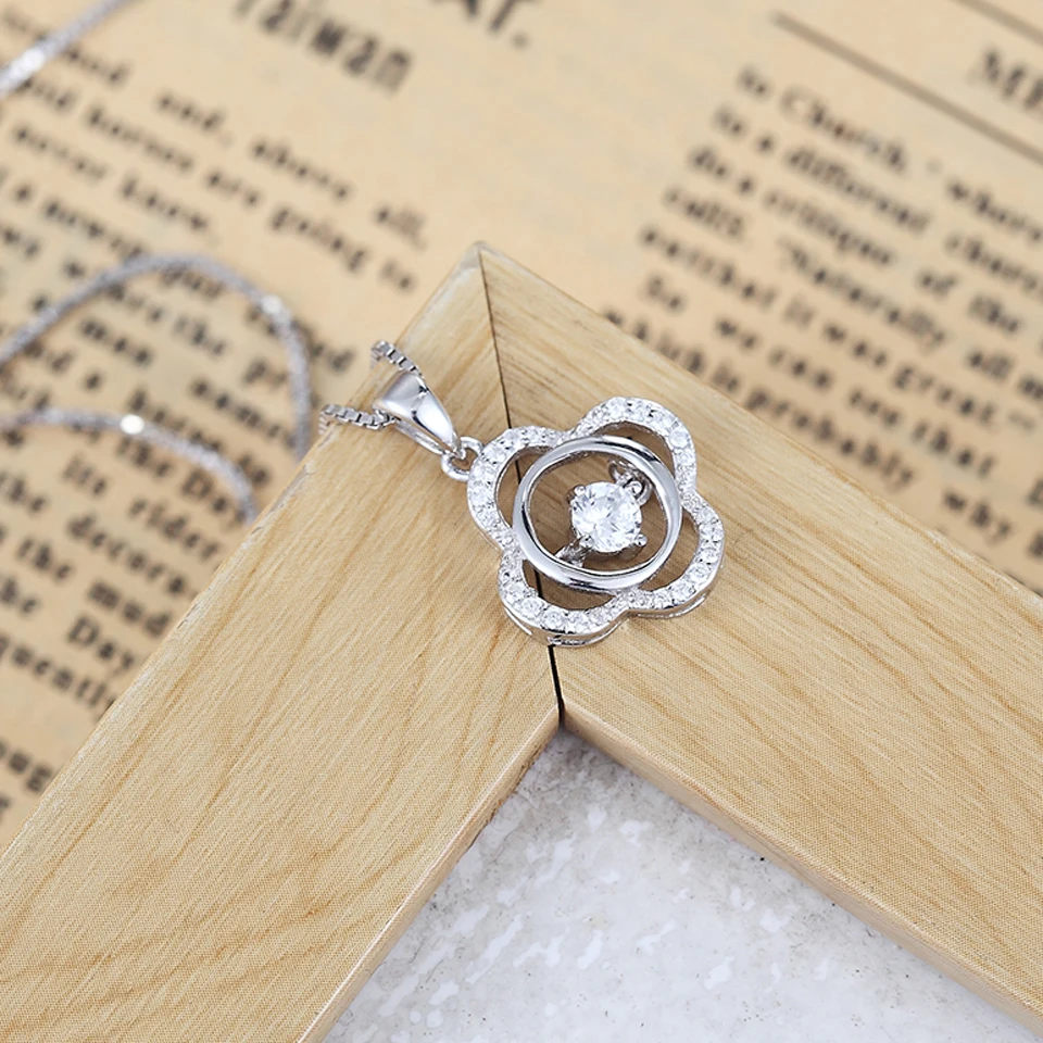 Autentica collana in argento sterling 925 con foglia e cerchio in cristallo trasparente CZ, collana con ciondolo da sposa per gioielli da donna