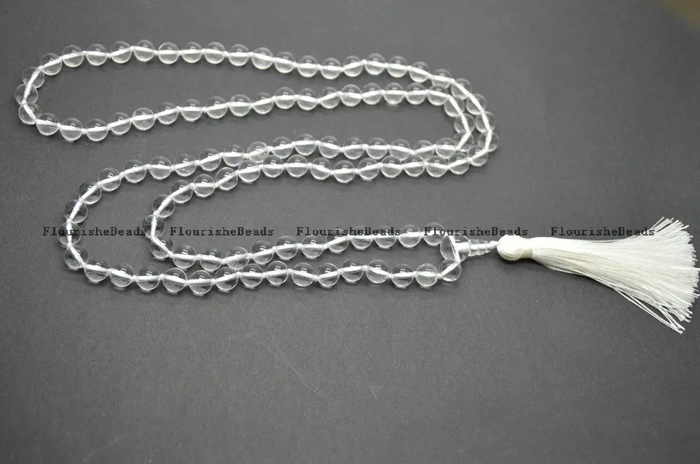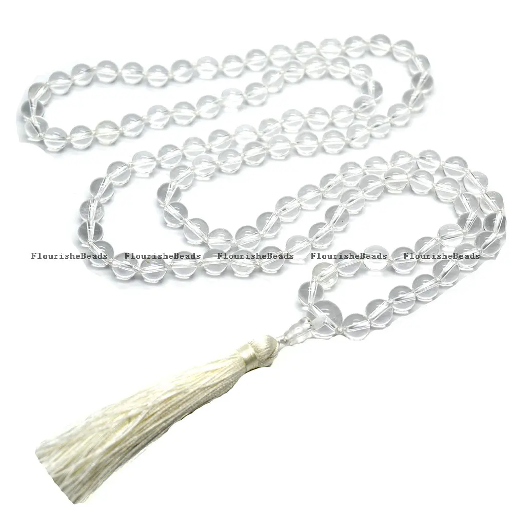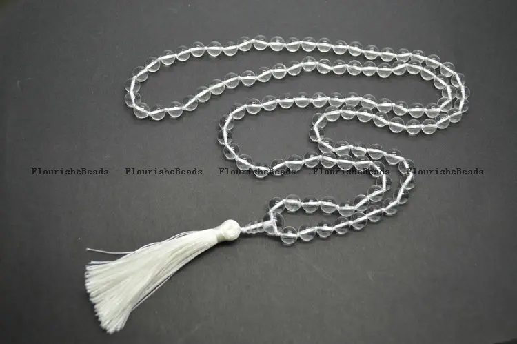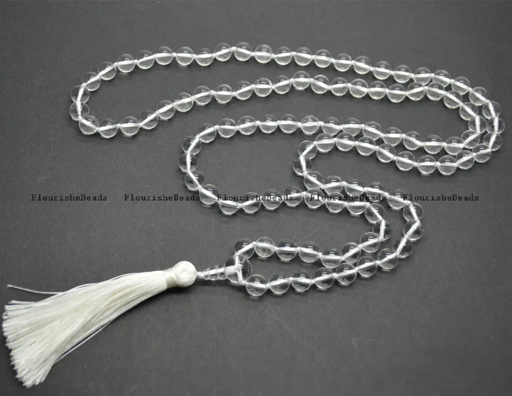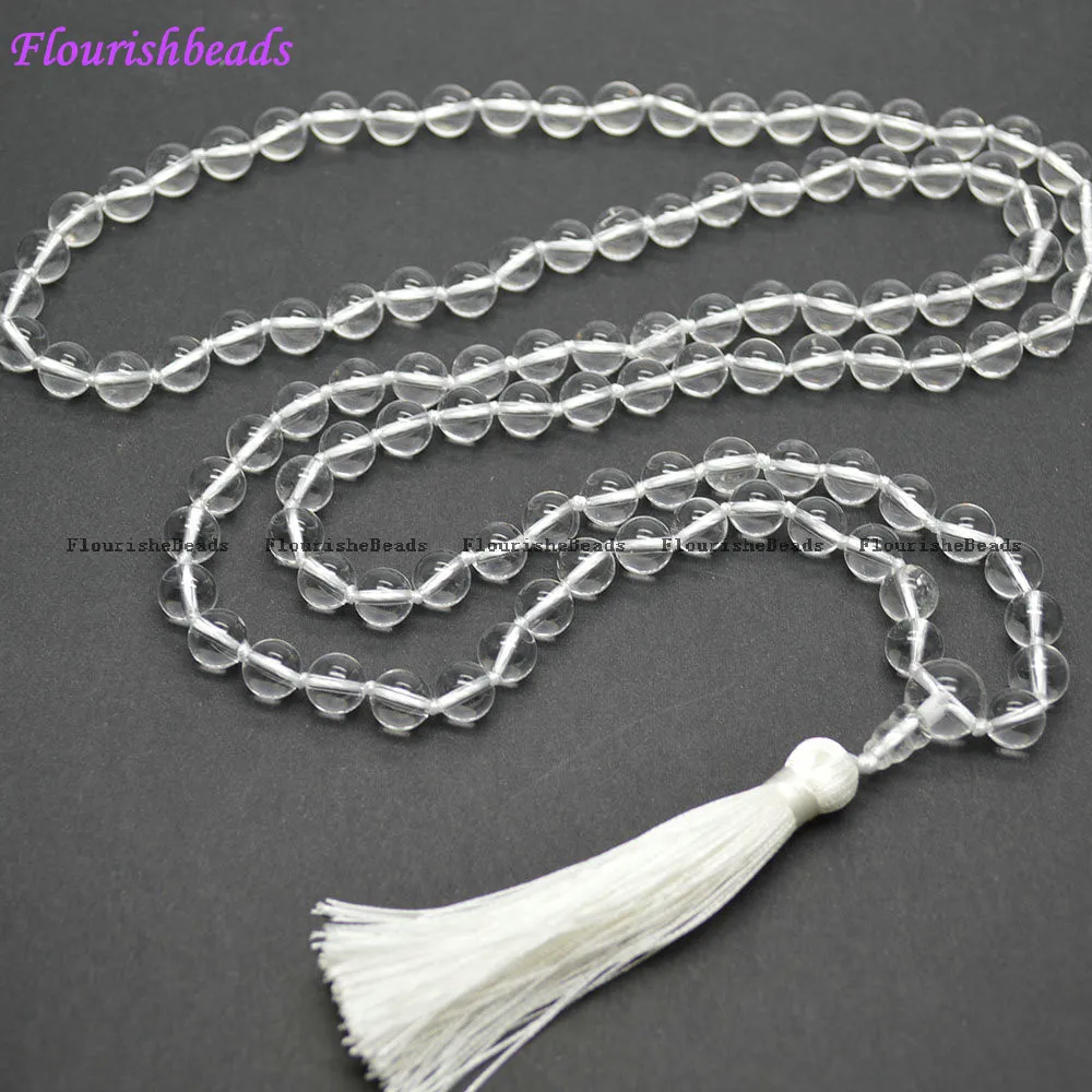 Natural 8mm Clear Crystal Quartz 108 Stone Round Beads Tassel Pendant Kontted Mala Prayer Necklace Jewelry