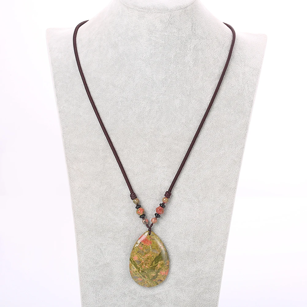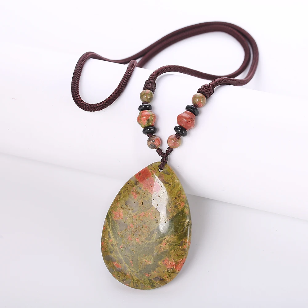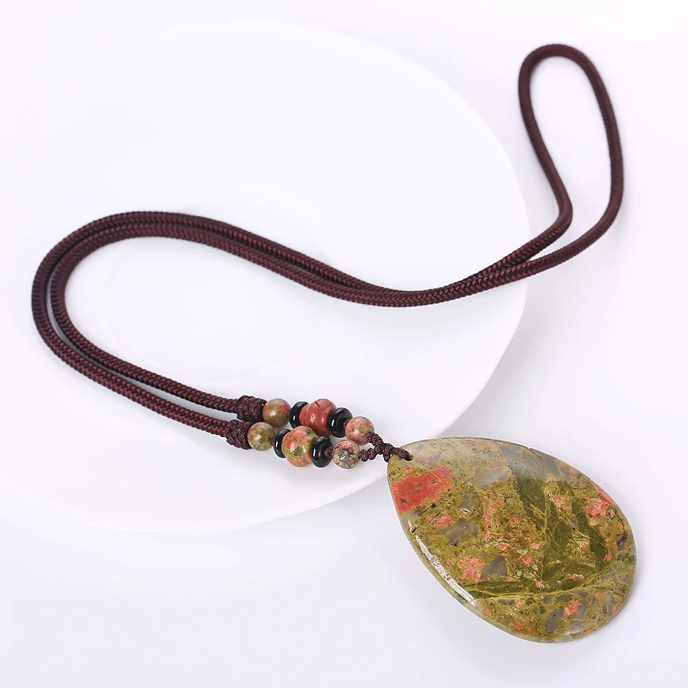 Collana con ciondolo Reiki in cristallo curativo con agata naturale Gocce d'acqua Amuleti Talismani Collana per coppia Donna Pietra con motivo verde