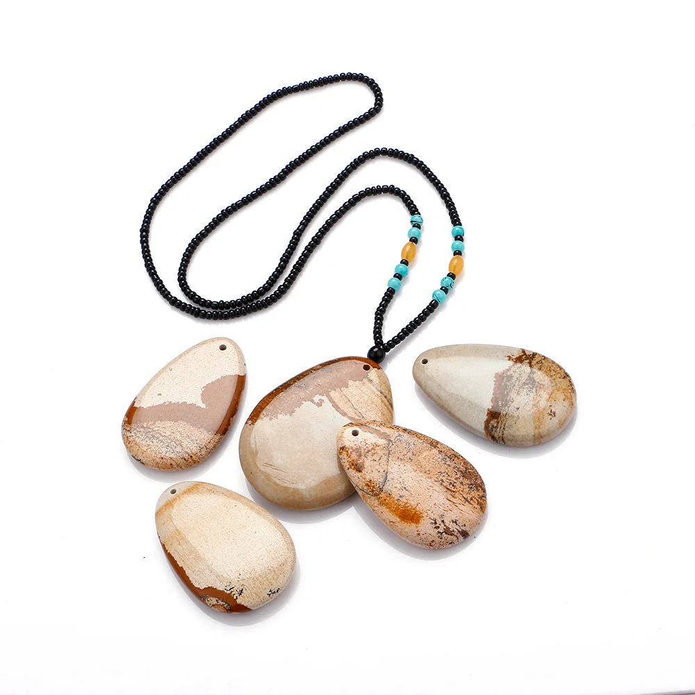 Collana con pietra naturale da disegno Collana con goccioline d'acqua da donna Collana lunga con ciondolo in ambra irregolare Collares Collana lunga con gioielli Maxi Colar