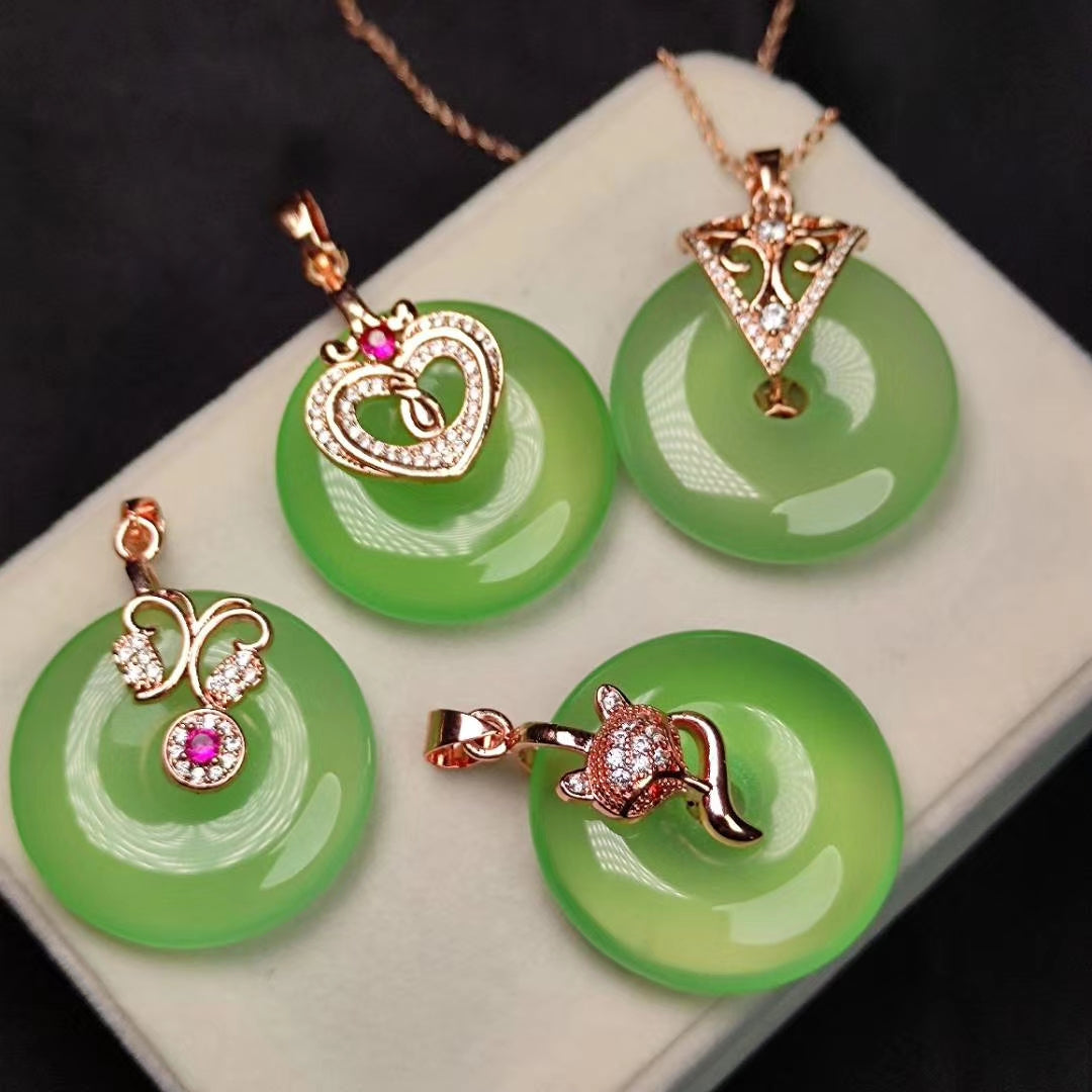 Highly recommend :pink and apple green, the color is clear, natural chalcedony, metal buckle is random, special needs, please note; Natural jade color will have shades, as well as the texture of the stone;