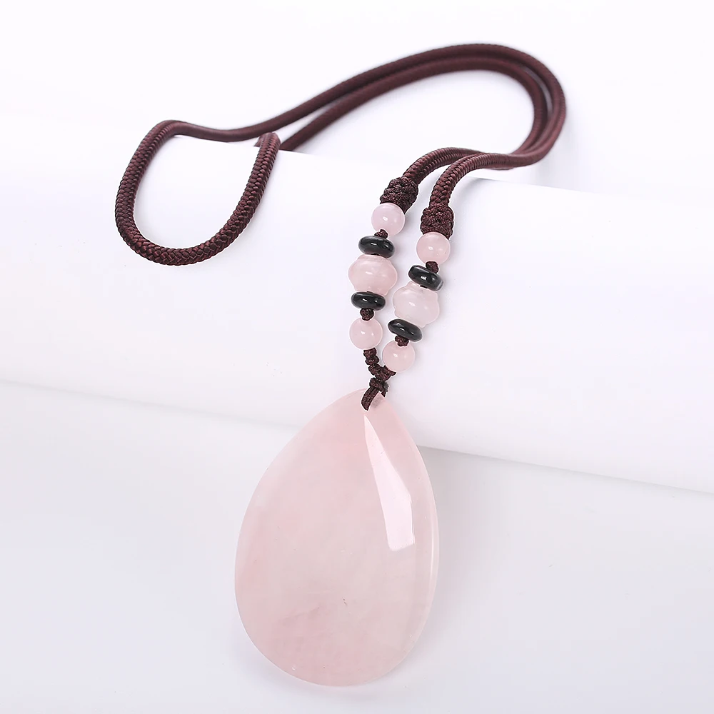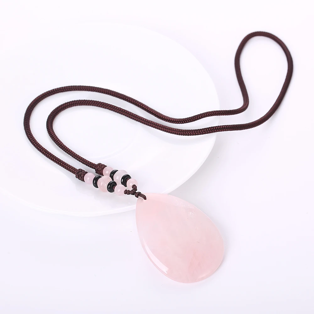 Natural Jade Pendant Necklace Healing Crystal Quartz Column Gem Turquoise Encrusted Pendant Leather Chains Women Jewelry Choker