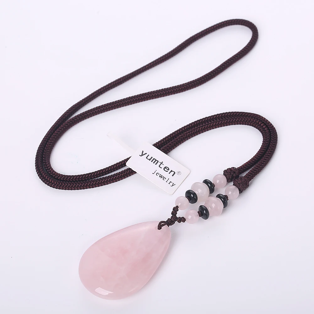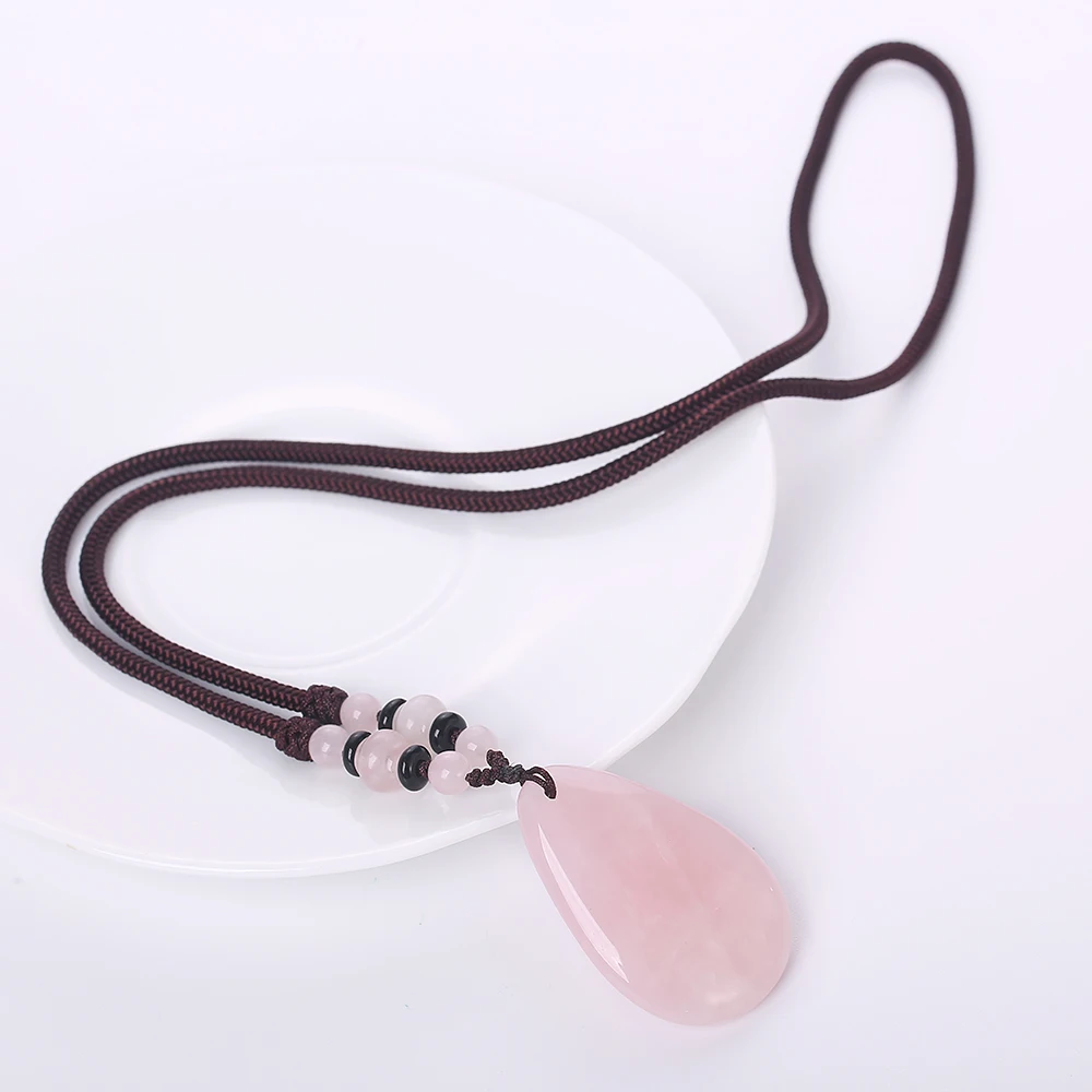 Natural Stone Charms Chakra Pendant Quartz Rock Pink Crystal Pendant Clear Chakra Gemstone Pendant Necklace Agate Gemstone Chain