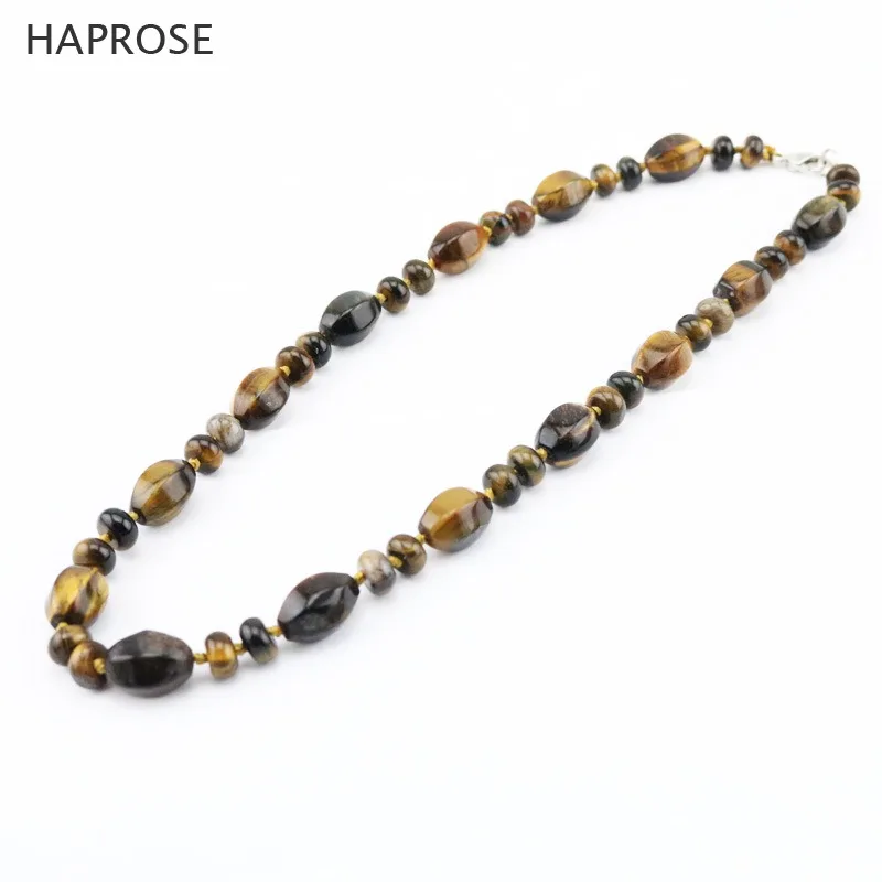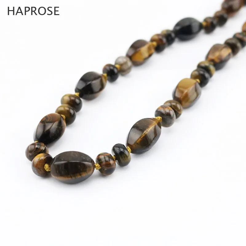 Natural Tiger Eye Stone Septum Separator Beads & Hexagonal Tiger Eye Stones Lobster claw clasp Bohemian style necklace 18 inches