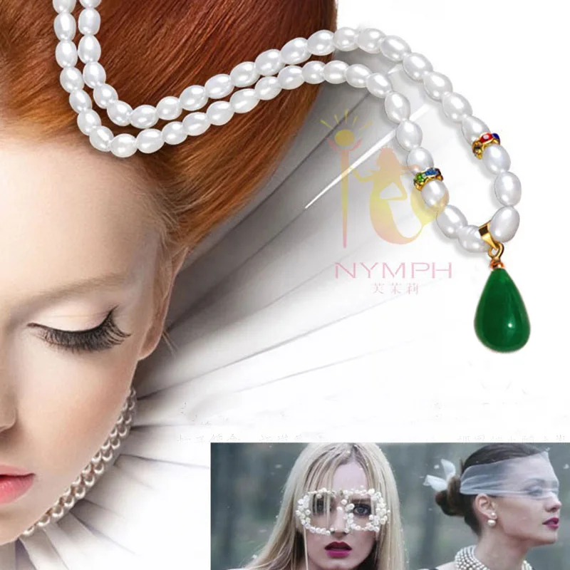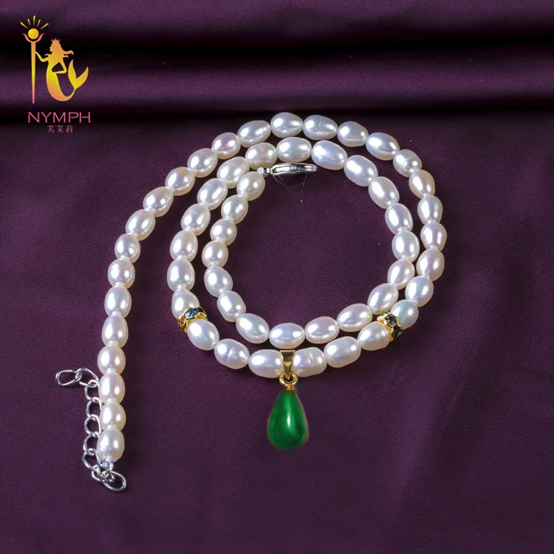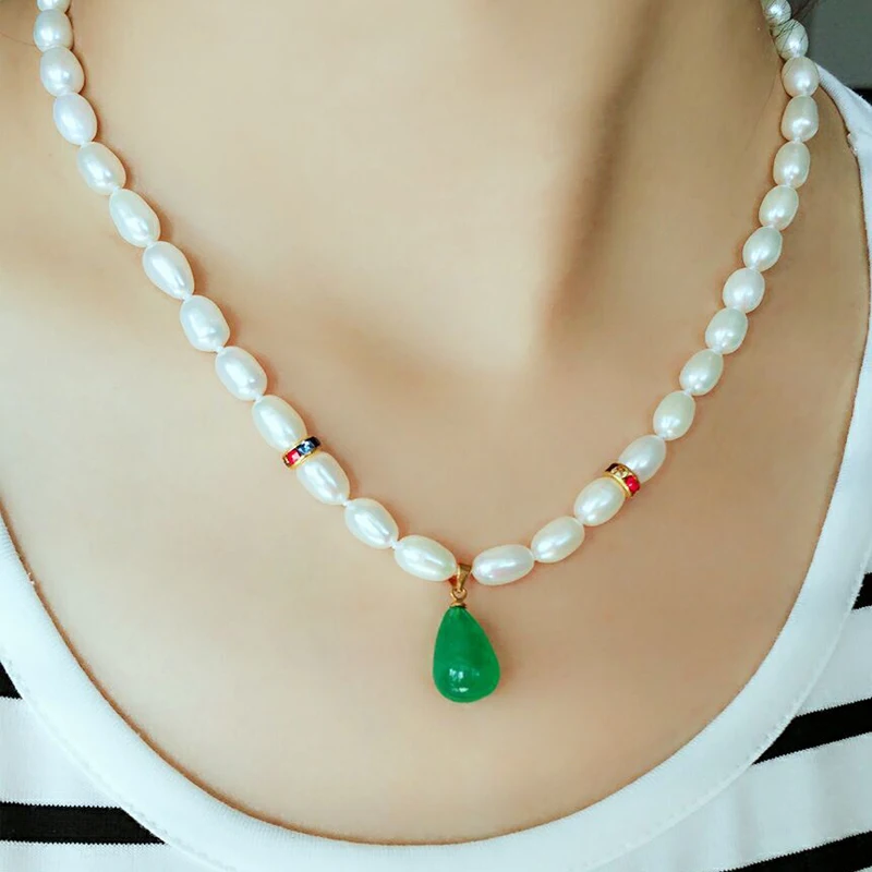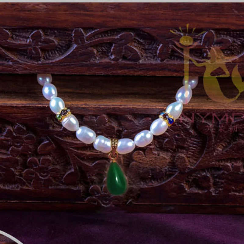 Natural Pearl Necklace Fine Jewelry White Pearl Choker Necklace For Women Trendy Green Agate Collar X305