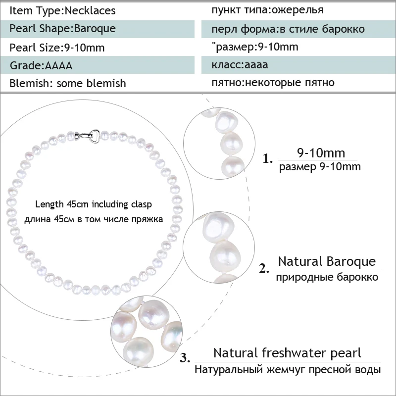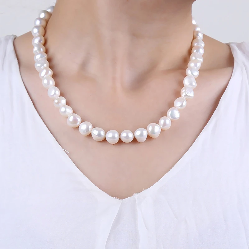 [NYMPH]Pearl Jewelry Baroque Pearl Necklace 9-10mm Natural Pearl Choker Necklace Trendy For Women Trendy Gift[x2005]