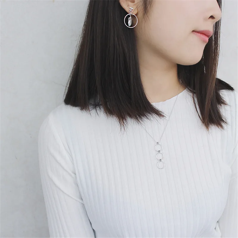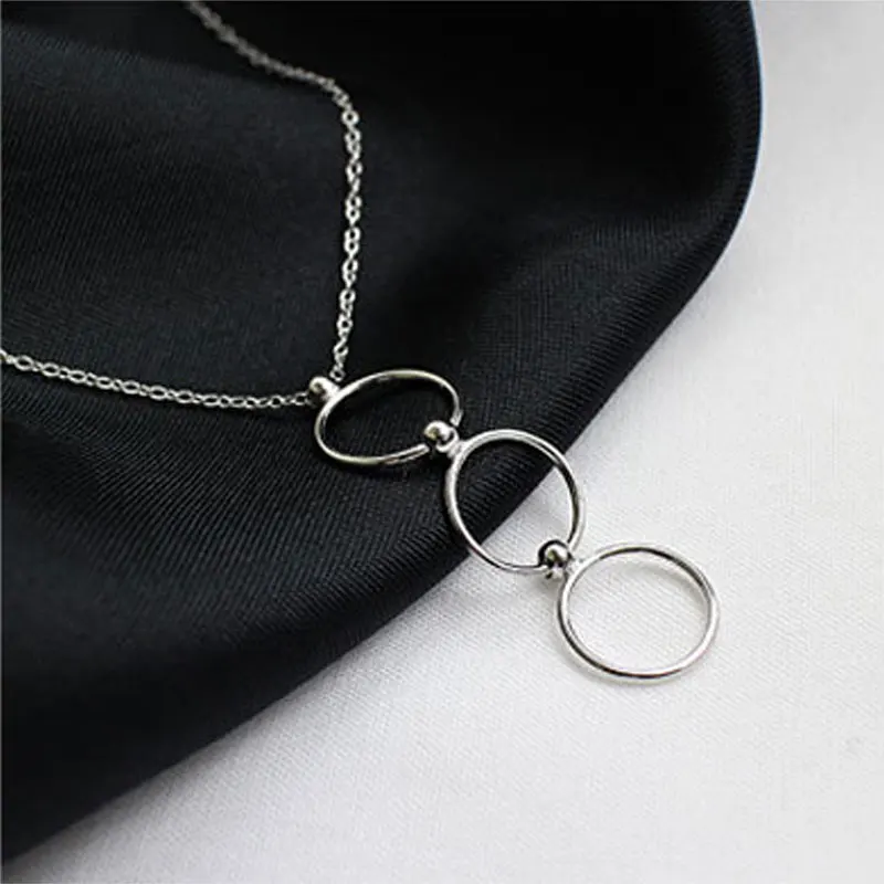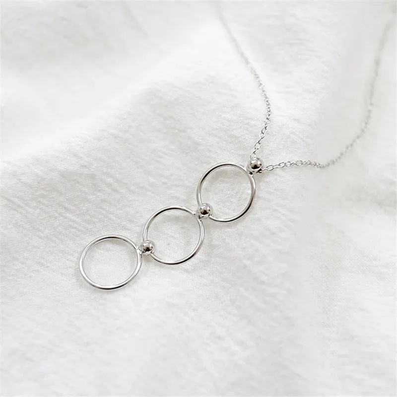 Collane con ciondolo per donna Vero argento sterling 925 Cerchi multipli Strati Collana con goccia Gioielleria raffinata Goccia S YMN075