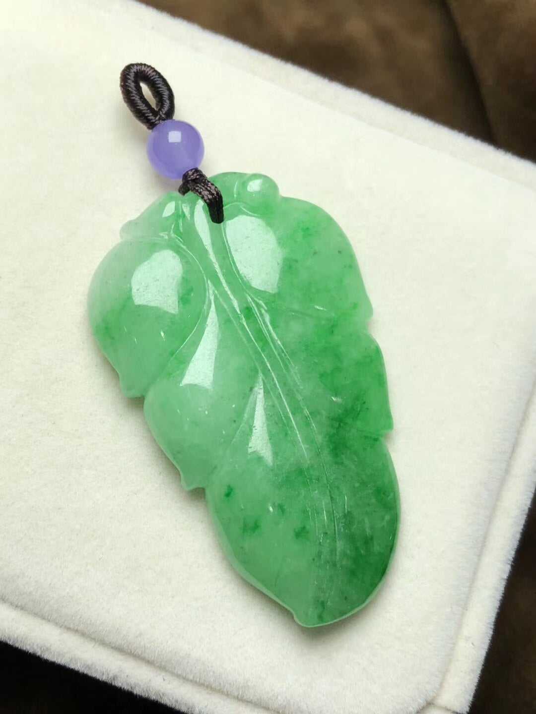 Only One ! Natural Ice Chalcedony Leaf Amulet Pendant Necklace Sweater Chain Jadeite JADE Wholesale