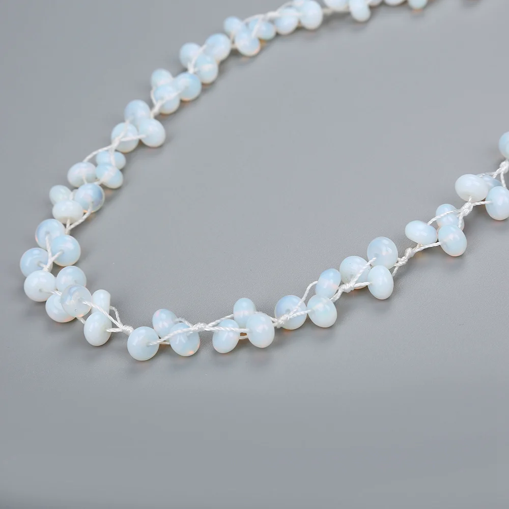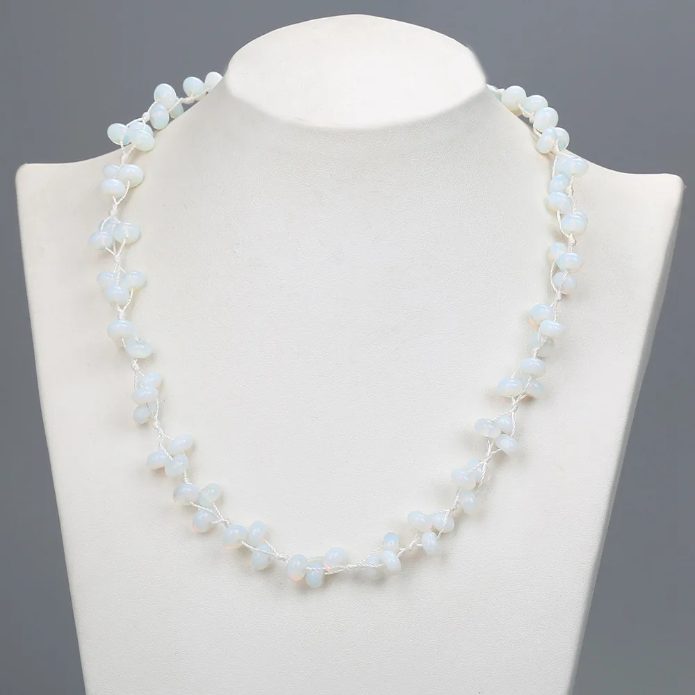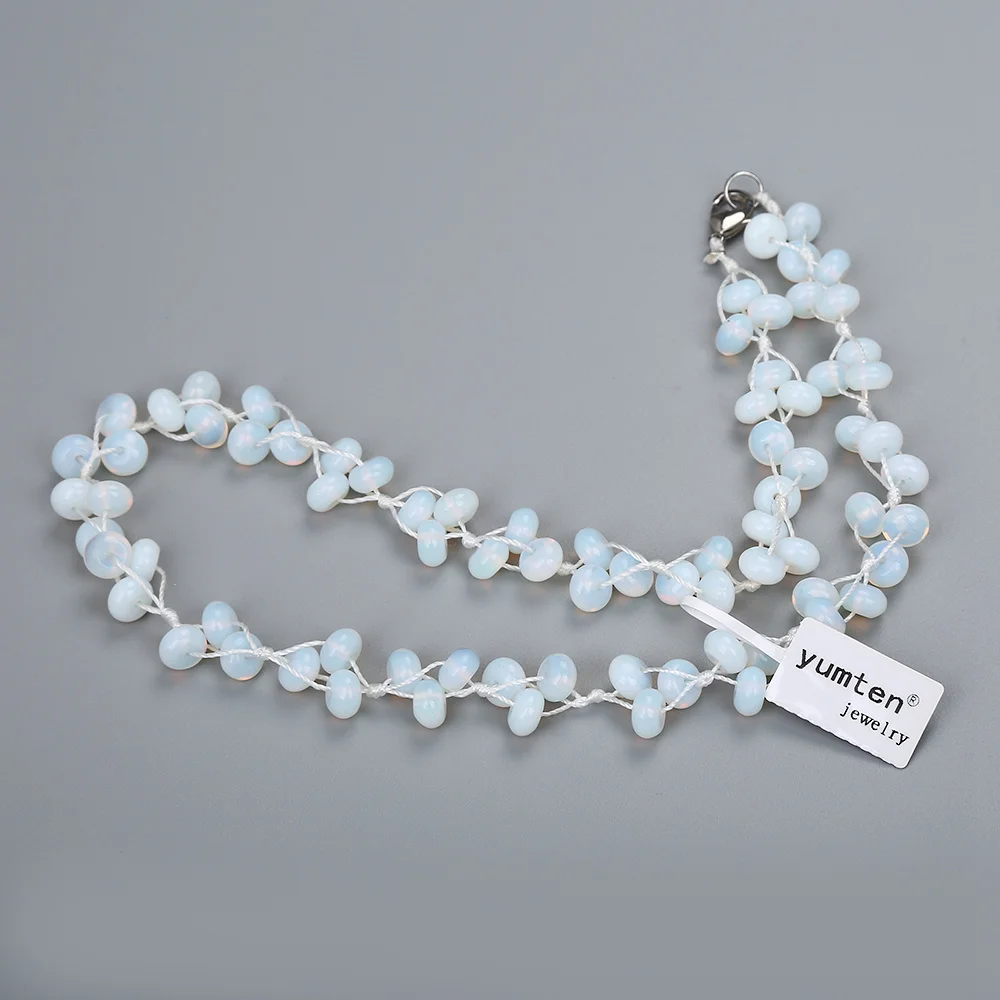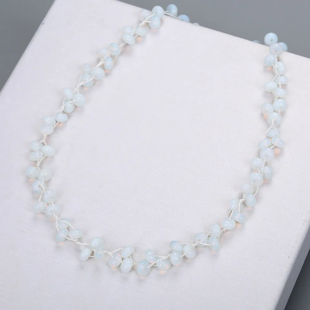 Collana con opale Pietra naturale Giada Cristallo bianco Catena di perle da donna Gioielli da donna pop Ancoraggio Semplice Collana con acchiappasogni Cristallo