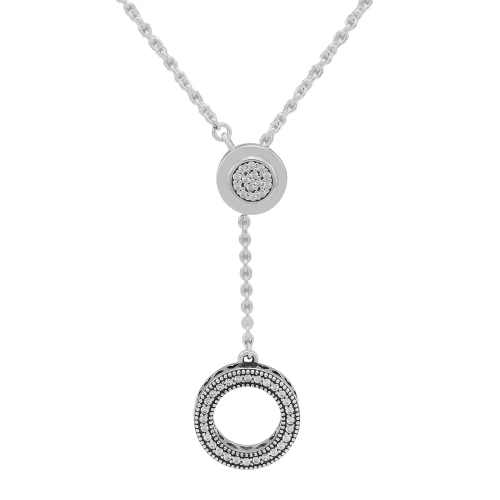 Collana e ciondolo firma Collana pendente rotonda Europa Clear CZ Collana da donna in argento sterling 925 per la moda femminile