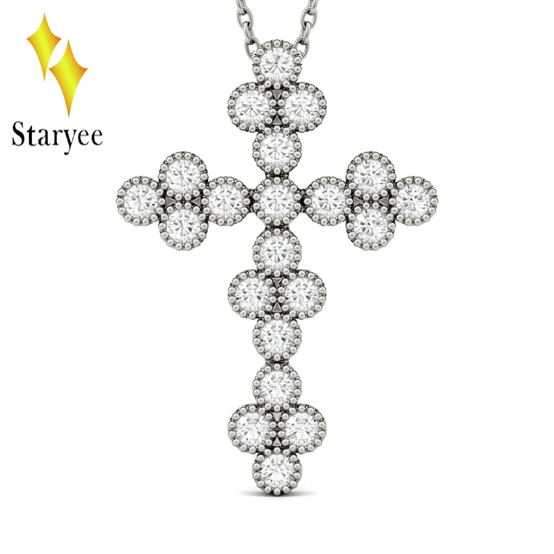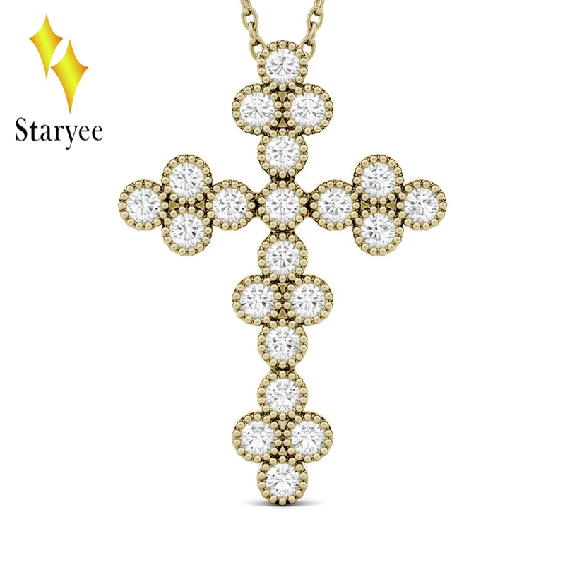 Real 18K 750 Rose Gold Moissanite Cross Pendant Lab Grown Moissanite Diamond Chain Pendant Necklace For Women in Fine Jewelry