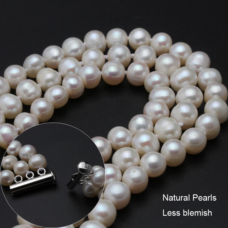 Veri gioielli in argento con collana di perle, collana chocker con tre supporti di perle Collana da sposa con gioielli per donna