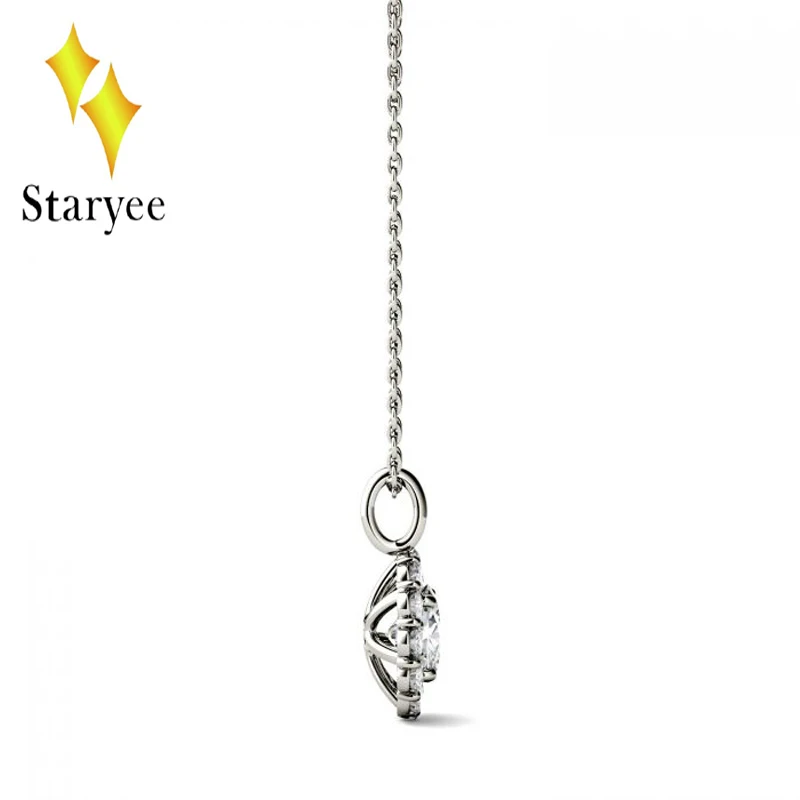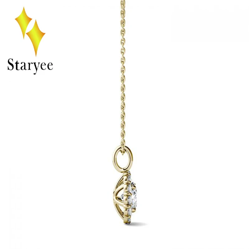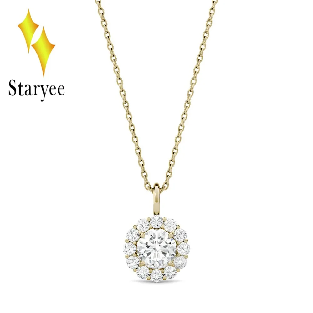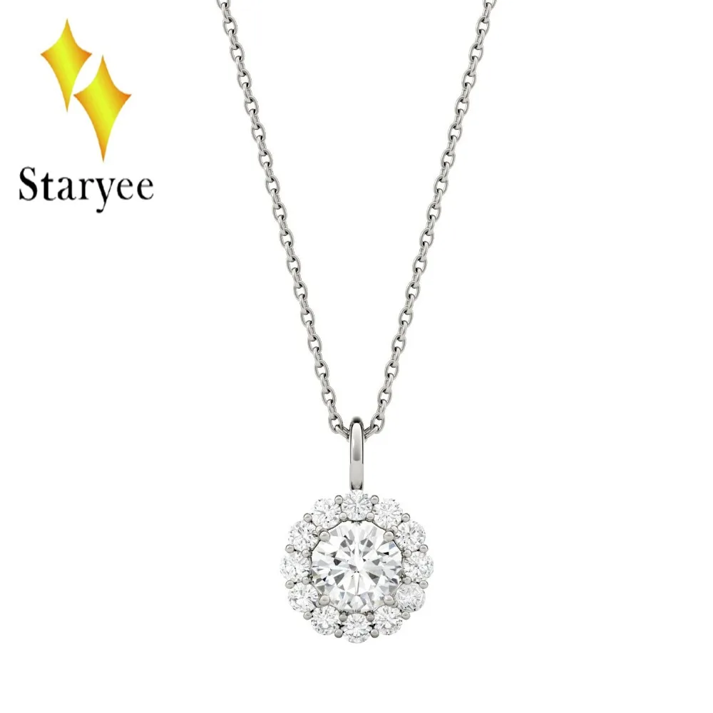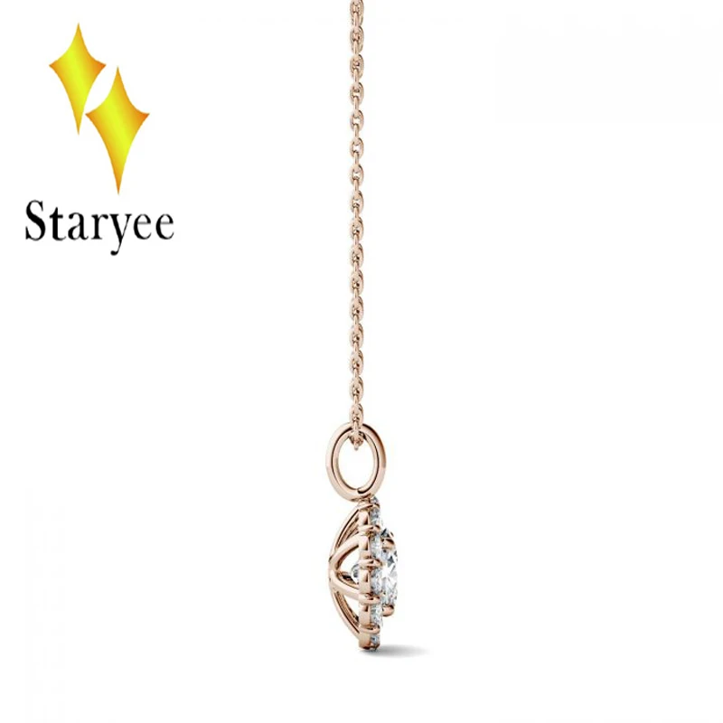 Round Moissanite Engagement Halo Necklace 0.6ct GH VS Lab Grown Diamond 18K Rose Gold Wedding Necklace Pendant Jewelry Gift