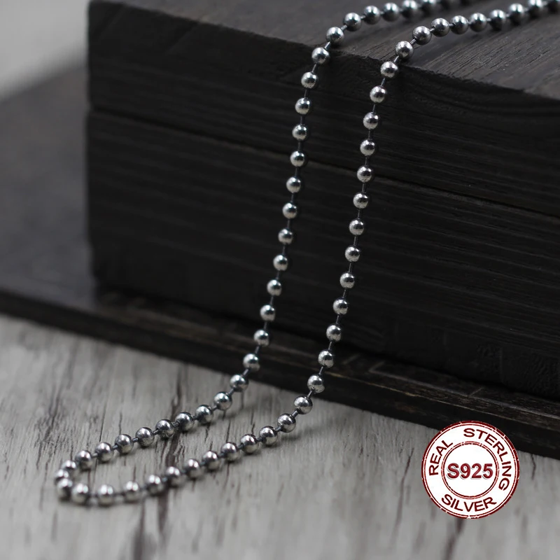 Collana in argento sterling da uomo S925 Classici della personalità Serie retrò semplice e generosa Catena di maglione con perline rotonde Invia un regalo