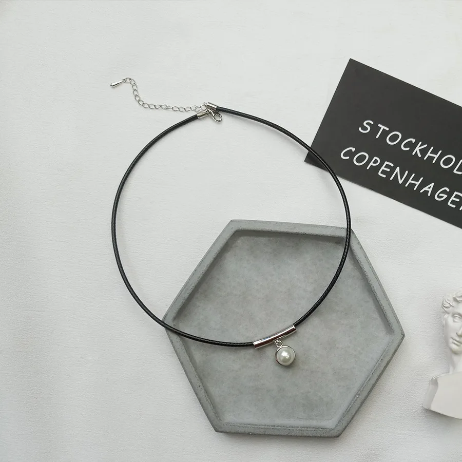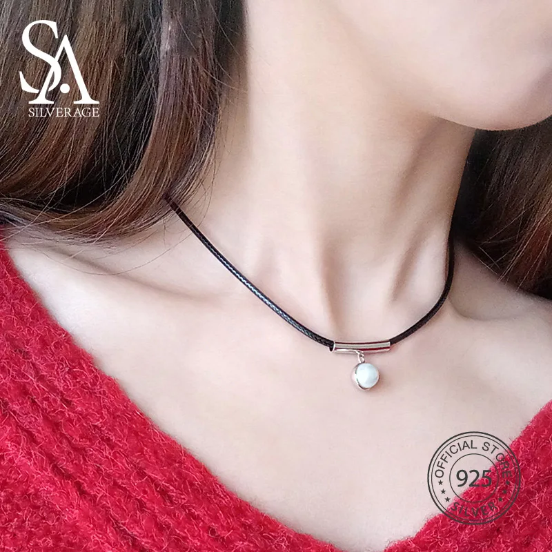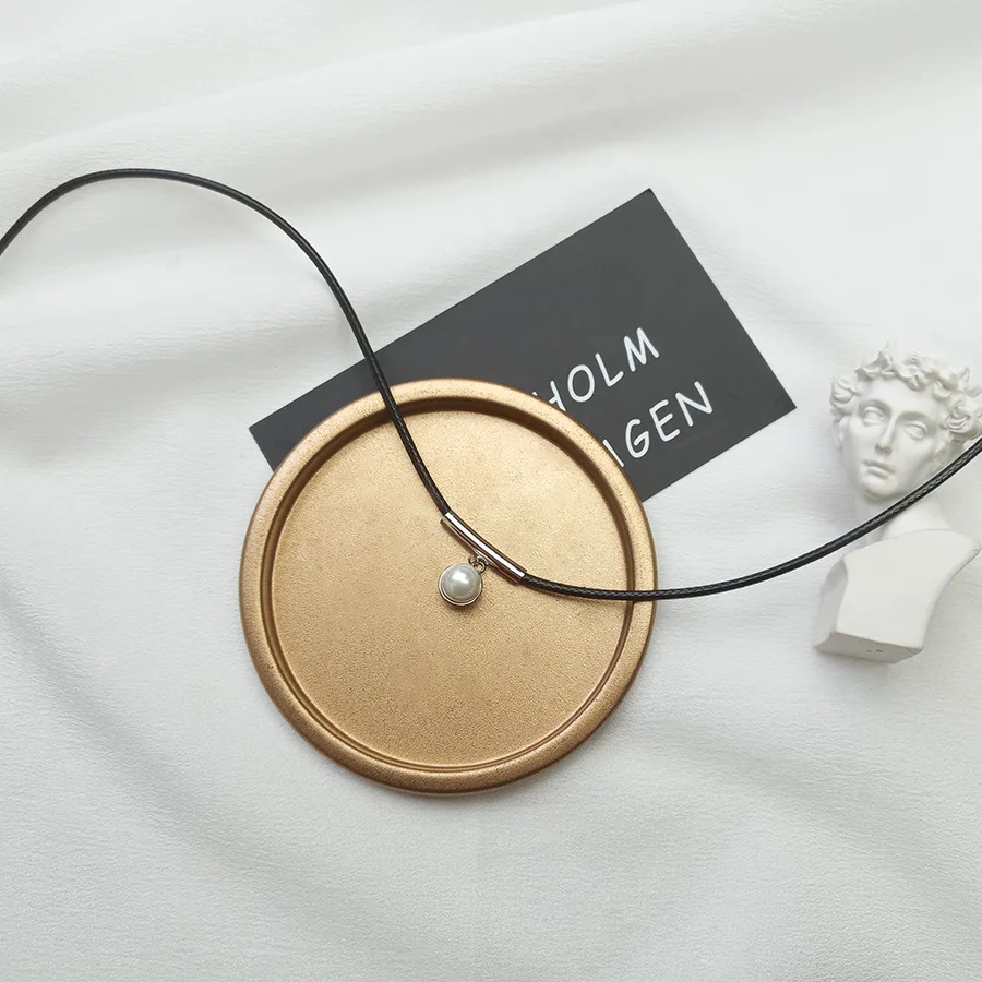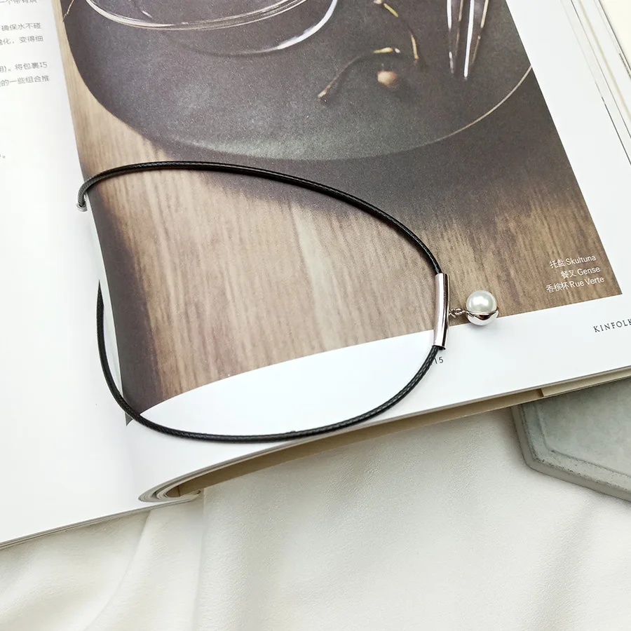 Collane girocollo in corda nera in argento sterling 925 per le donne Collana girocollo in argento 925 con perle alla moda