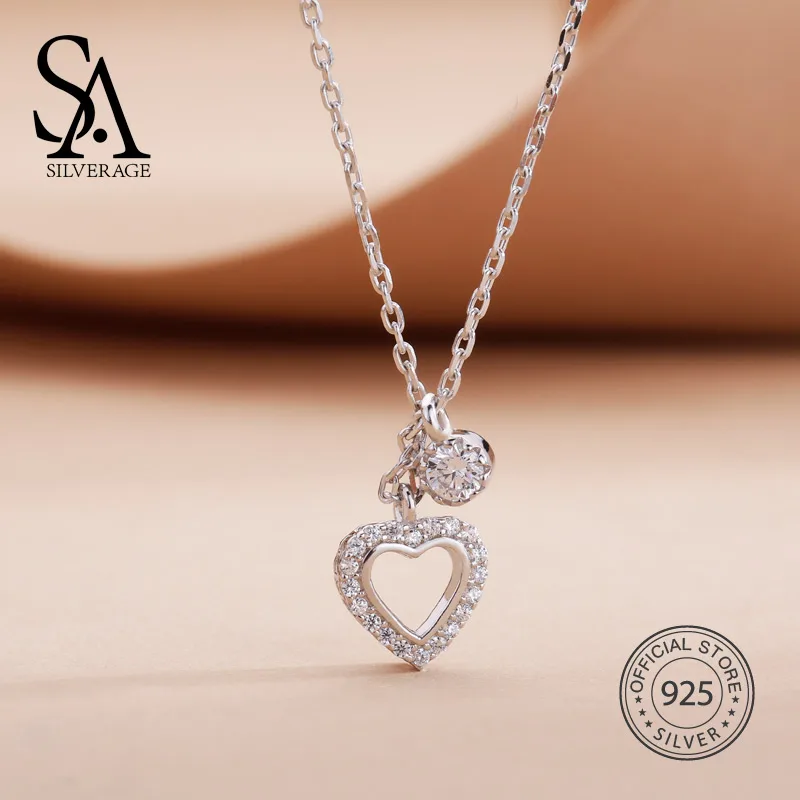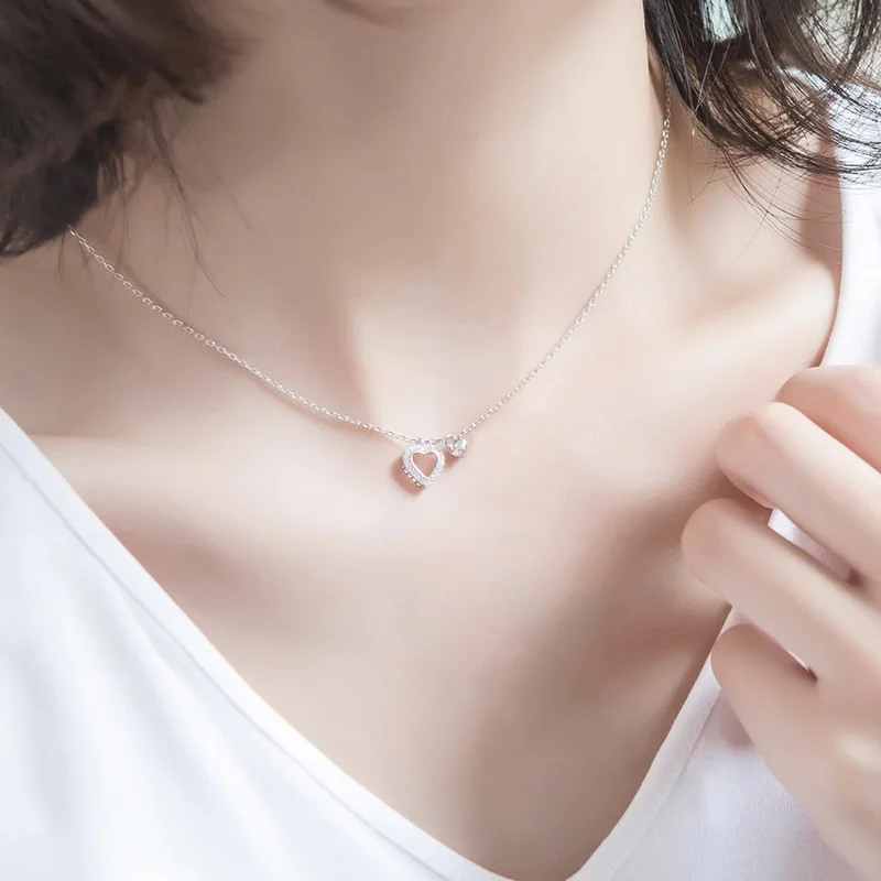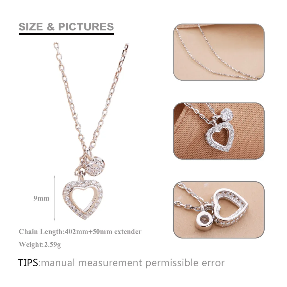 Real 925 Sterling Silver Heart Chokers Necklaces for Women Silver 925 Necklace AAA Zirconia Chain Necklace with Box