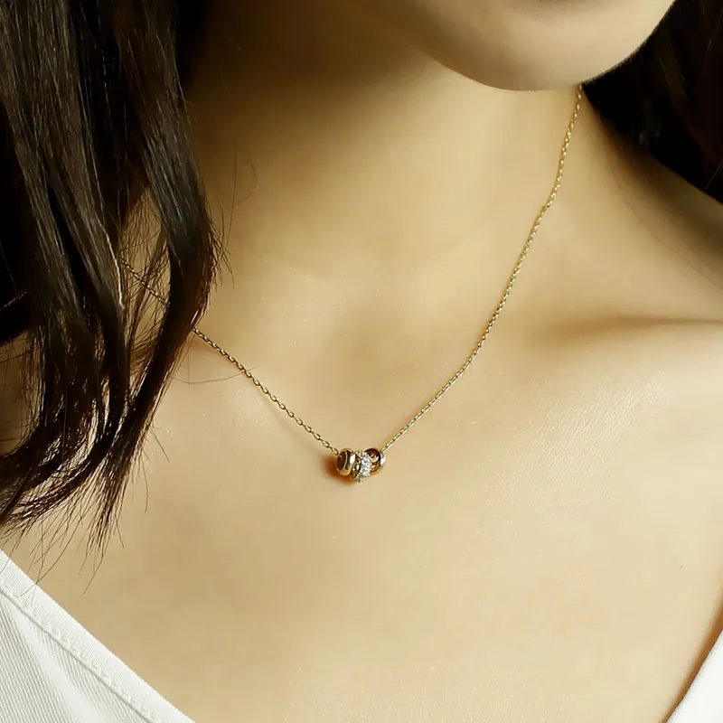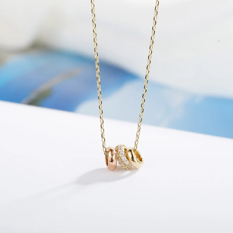 14K Yellow Gold Round Circel Pendant Chain Necklace for Women Fine Jewelry 2017 New Arrival