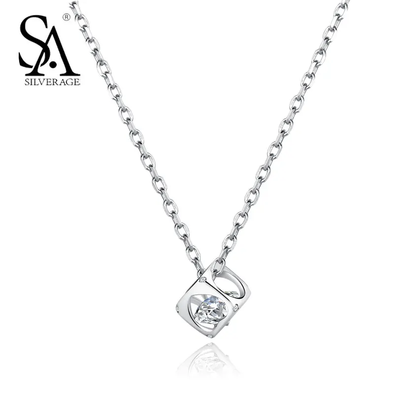 SILVERAGE Real 925 Sterling Silver Necklaces Beautiful Big Pendant Necklace for Women Wedding Long Necklace With Jewellery Box