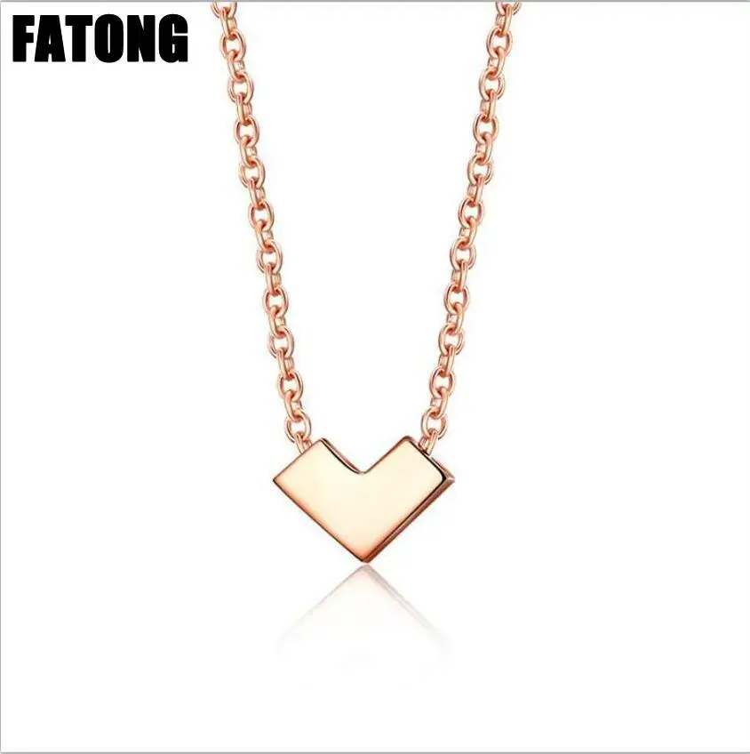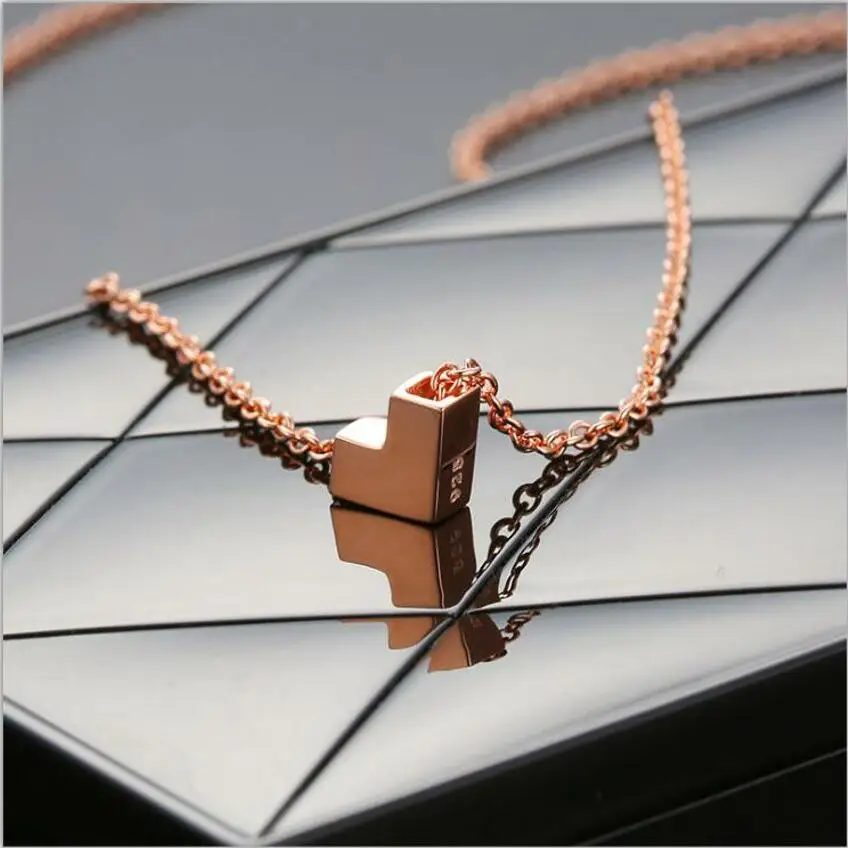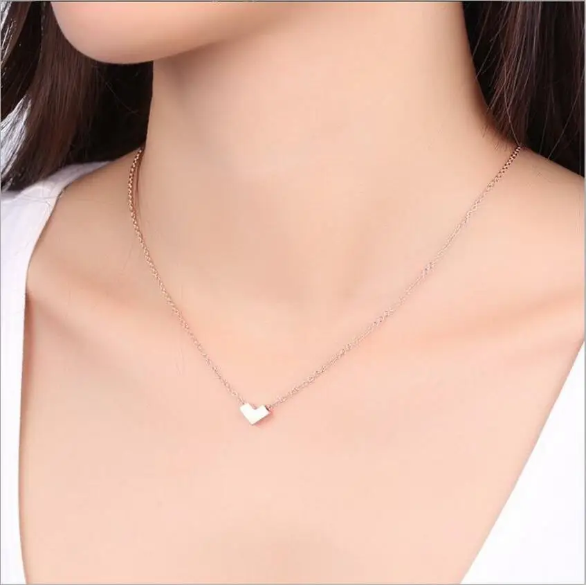 Simple mini rose gold heart-shaped necklace in 925 sterling silver for women and girls. J0214