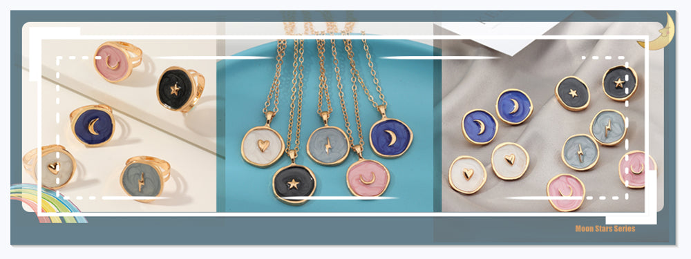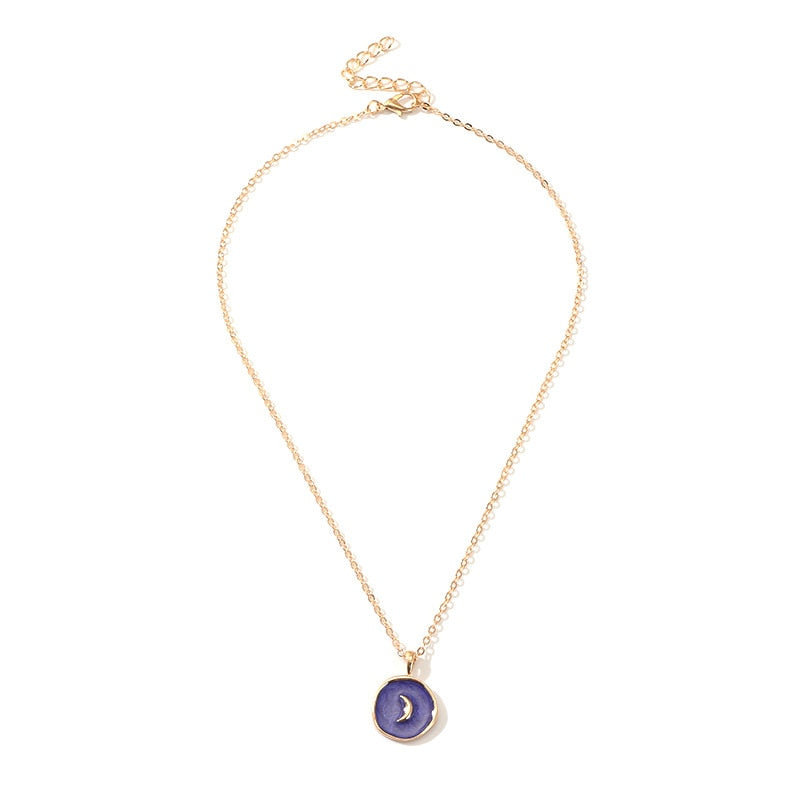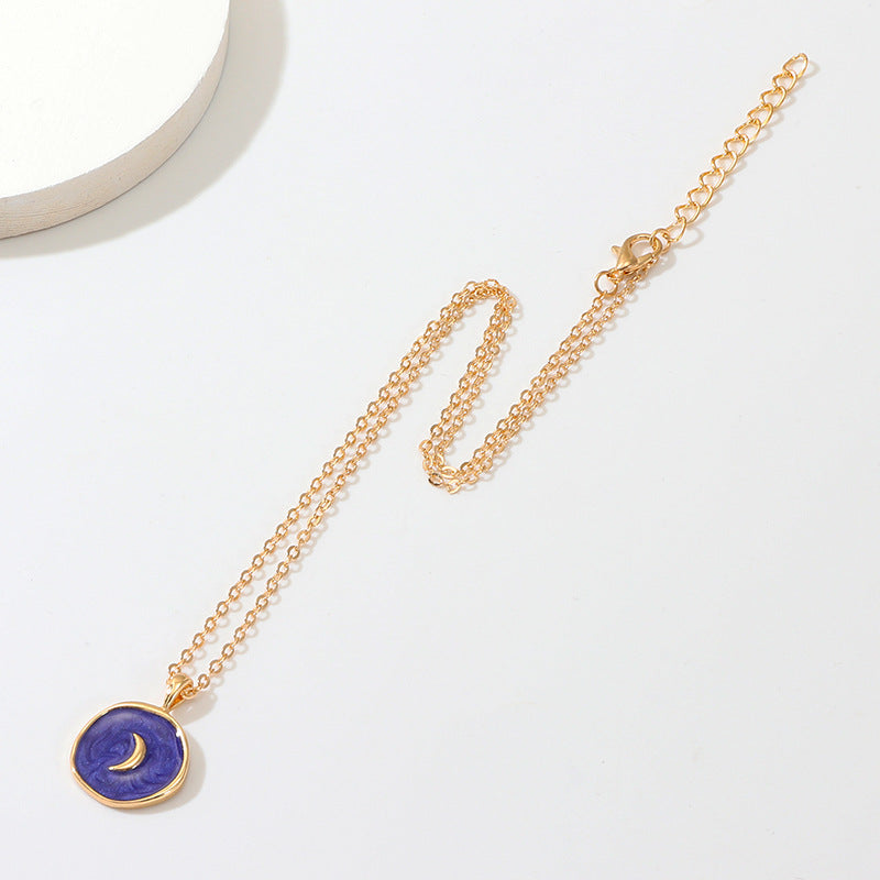 Simple Stars Moon Necklaces Fashion Europen Alloy Oil Drop Women Long Heart Round Golden Pendant Necklace Jewelry For Girls