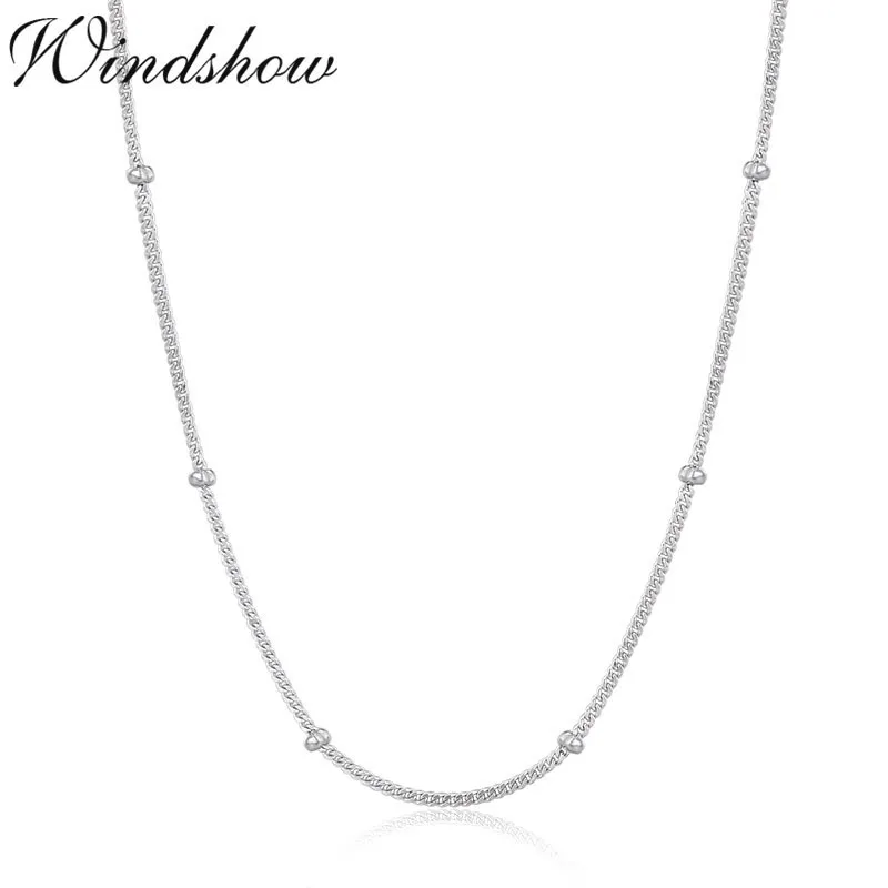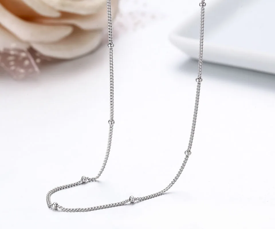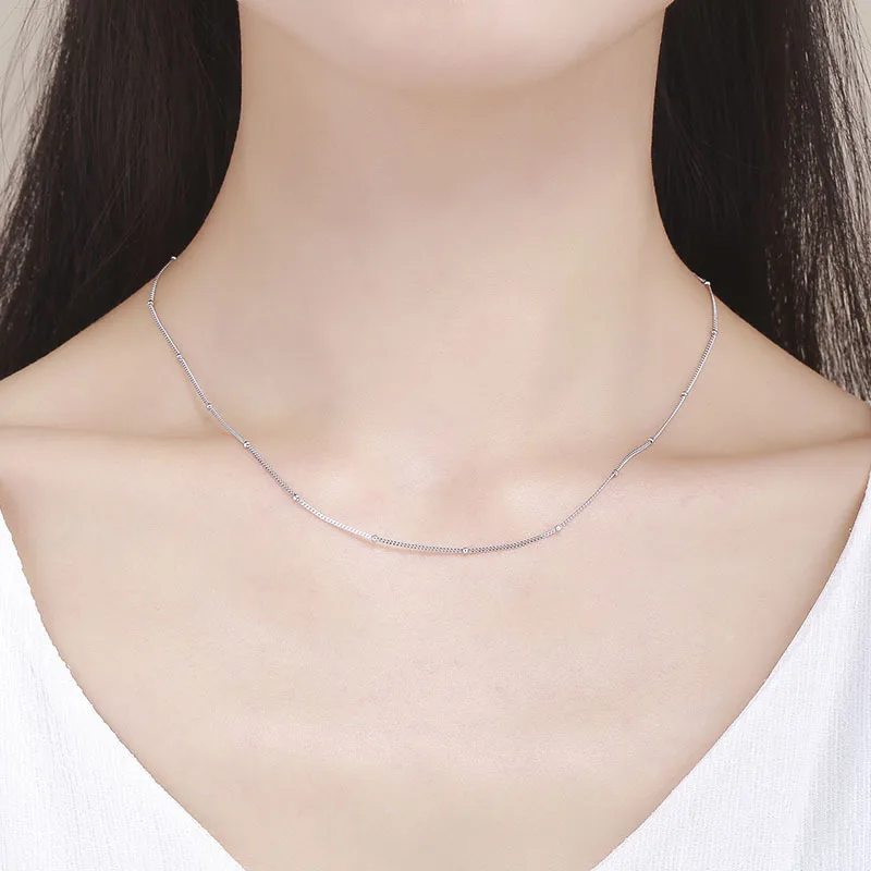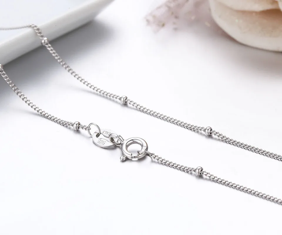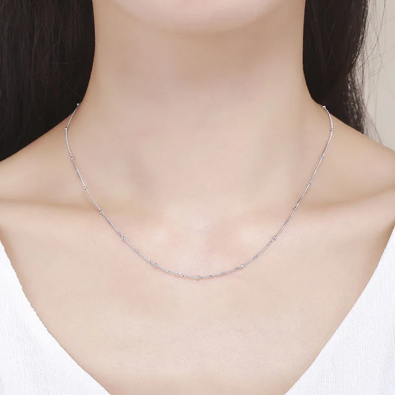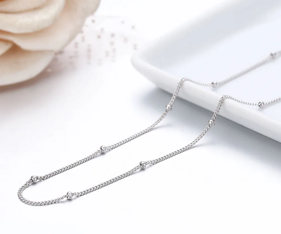 Slim 925 Sterling Silver Beaded Curb Chain Choker Necklaces Women Girls Jewelry kolye collares collane collier ketting 40cm 45cm