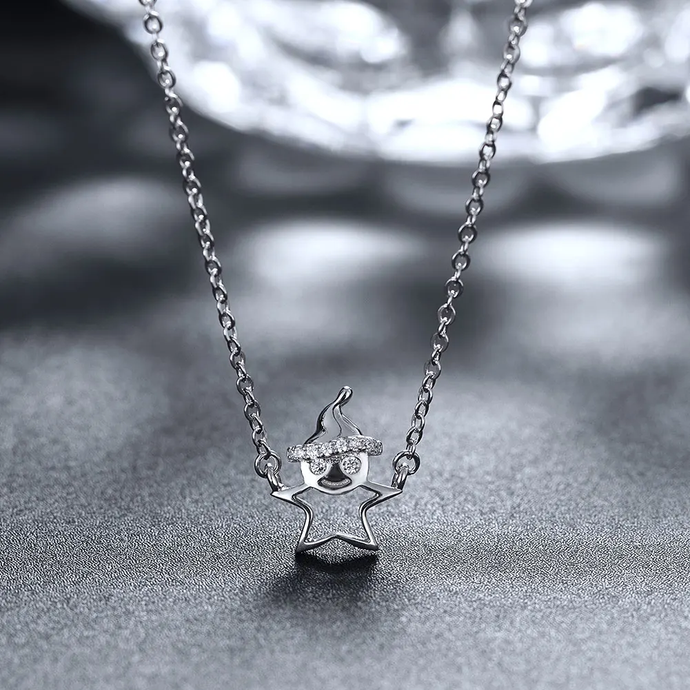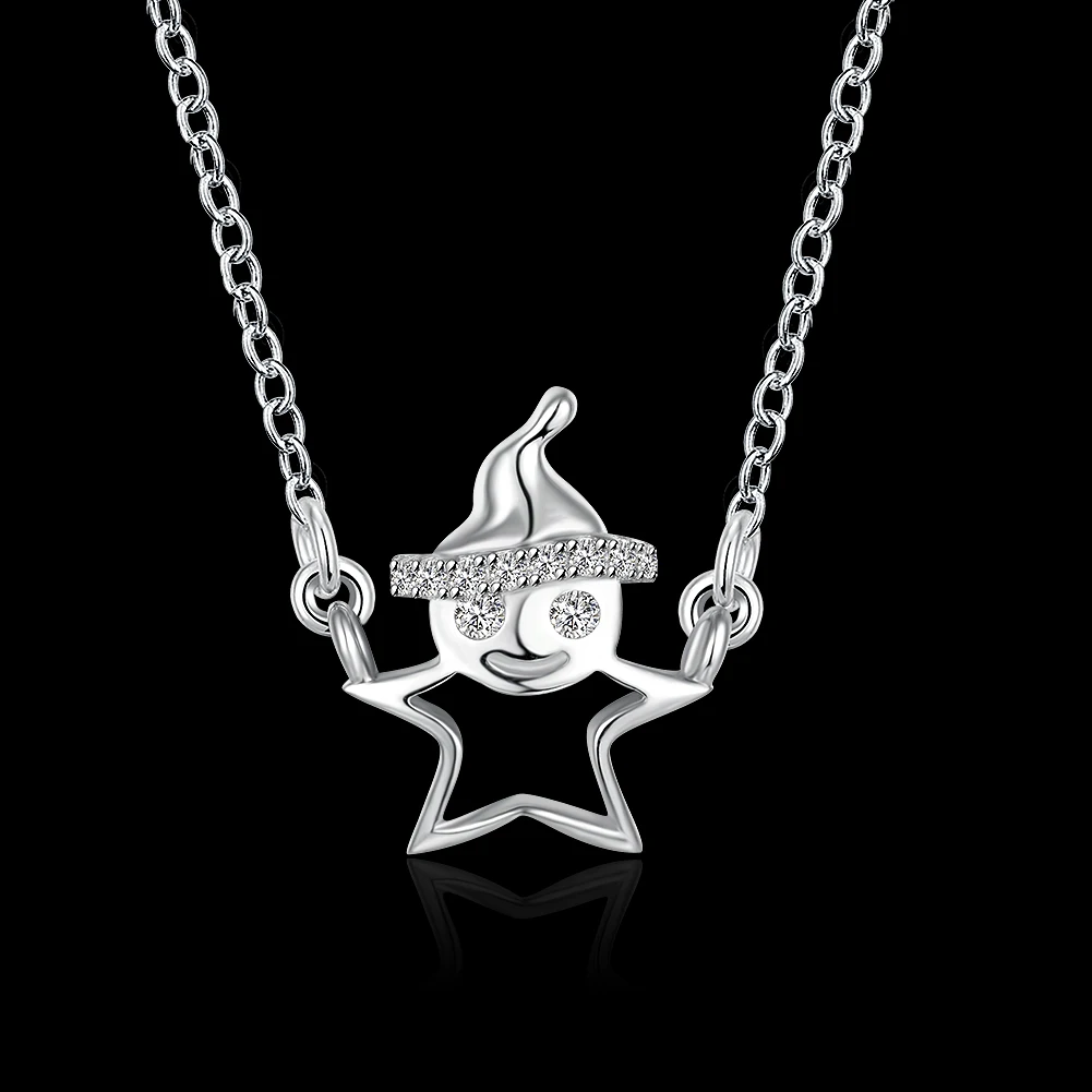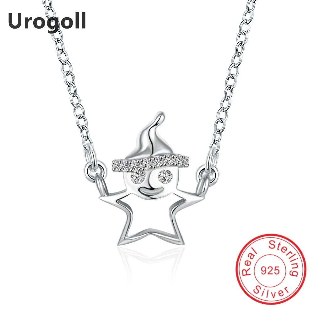 Solid 925 Sterling Silver Link Chain Necklaces Cute Fine Jewelry Chokers Necklaces For Women Star Snowman Pendant Necklaces