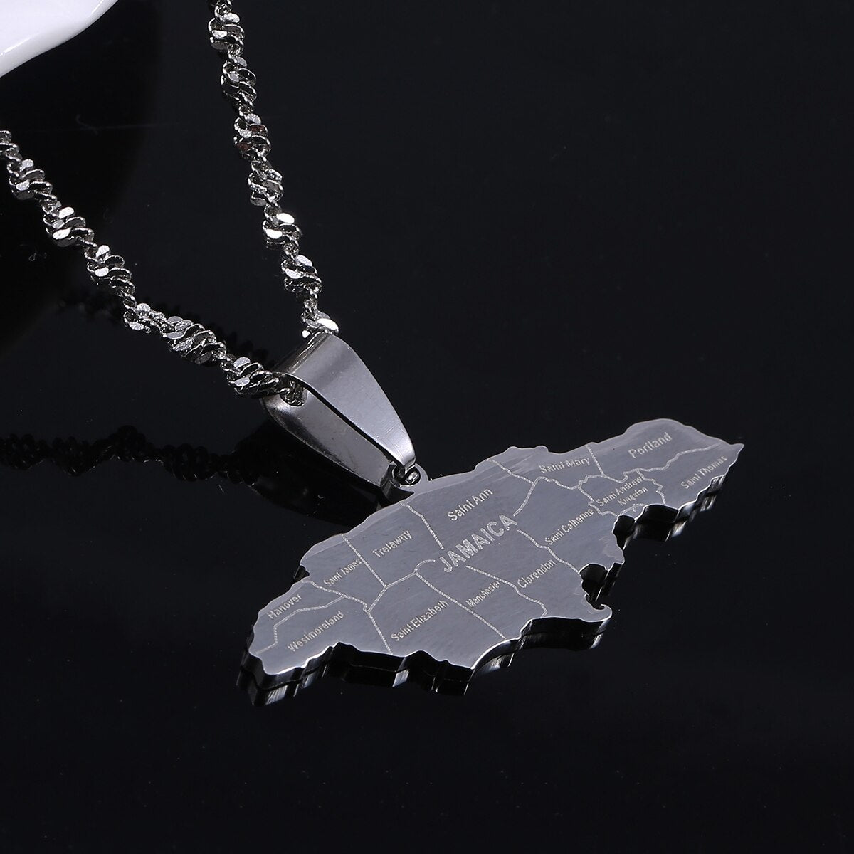 Stainless Steel Gold Color Jamaica Pendant Necklaces Fashion Jamaican Flag Charm Jewelry