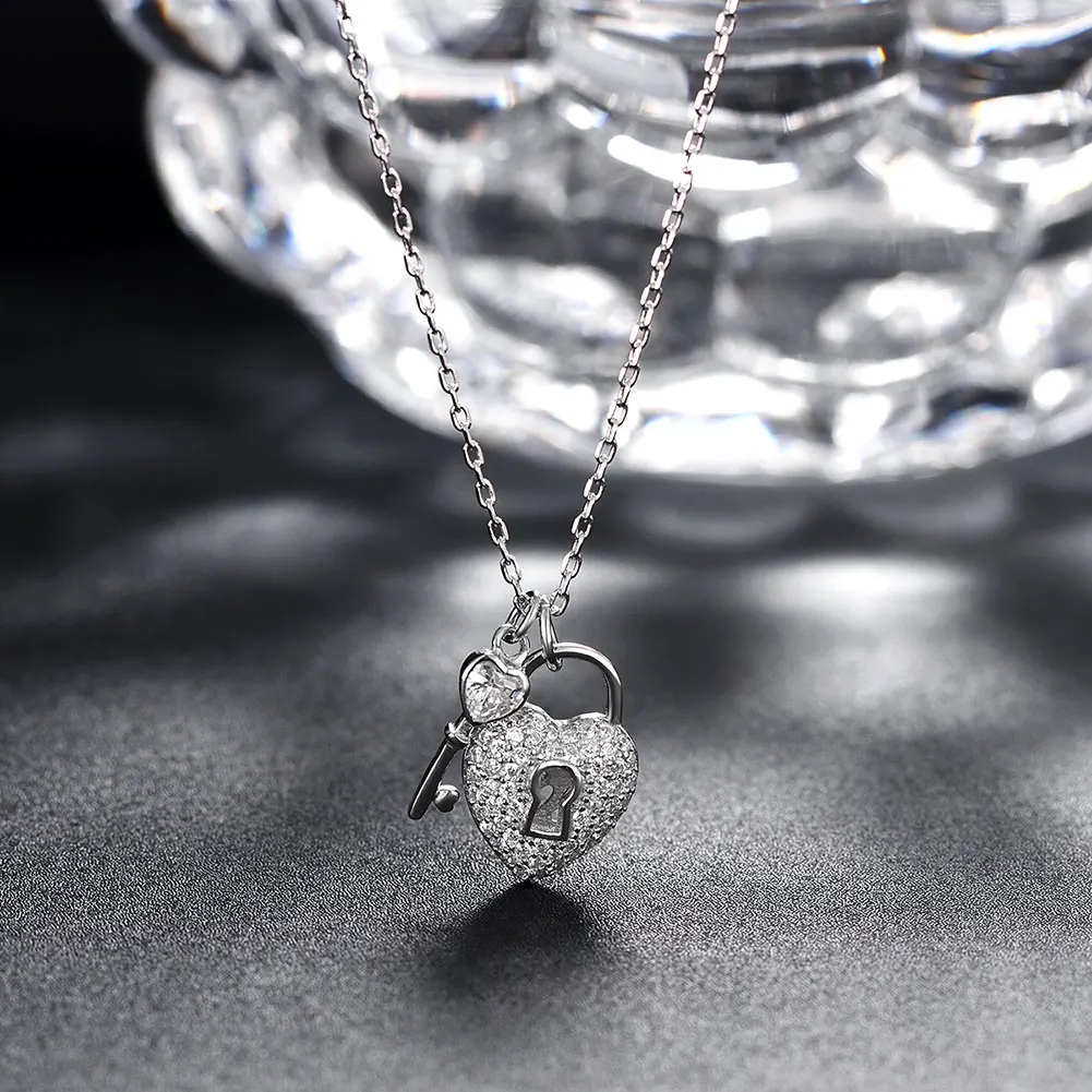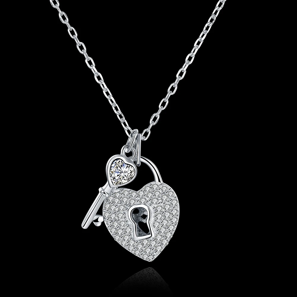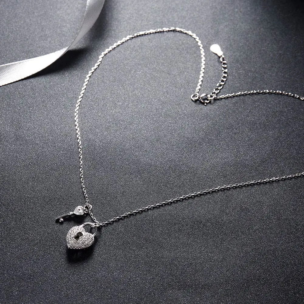 Gioielli in argento sterling Collane con ciondolo a forma di cuore e chiave in argento 925. Collane con girocolli e collane di gioielli Trenty per gioielli da donna