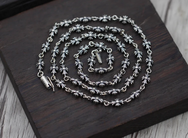 Collana in argento sterling Collana con croce semplice e semplice con personalità. Catena classica per maglione in stile coppia Invia un regalo all'amore